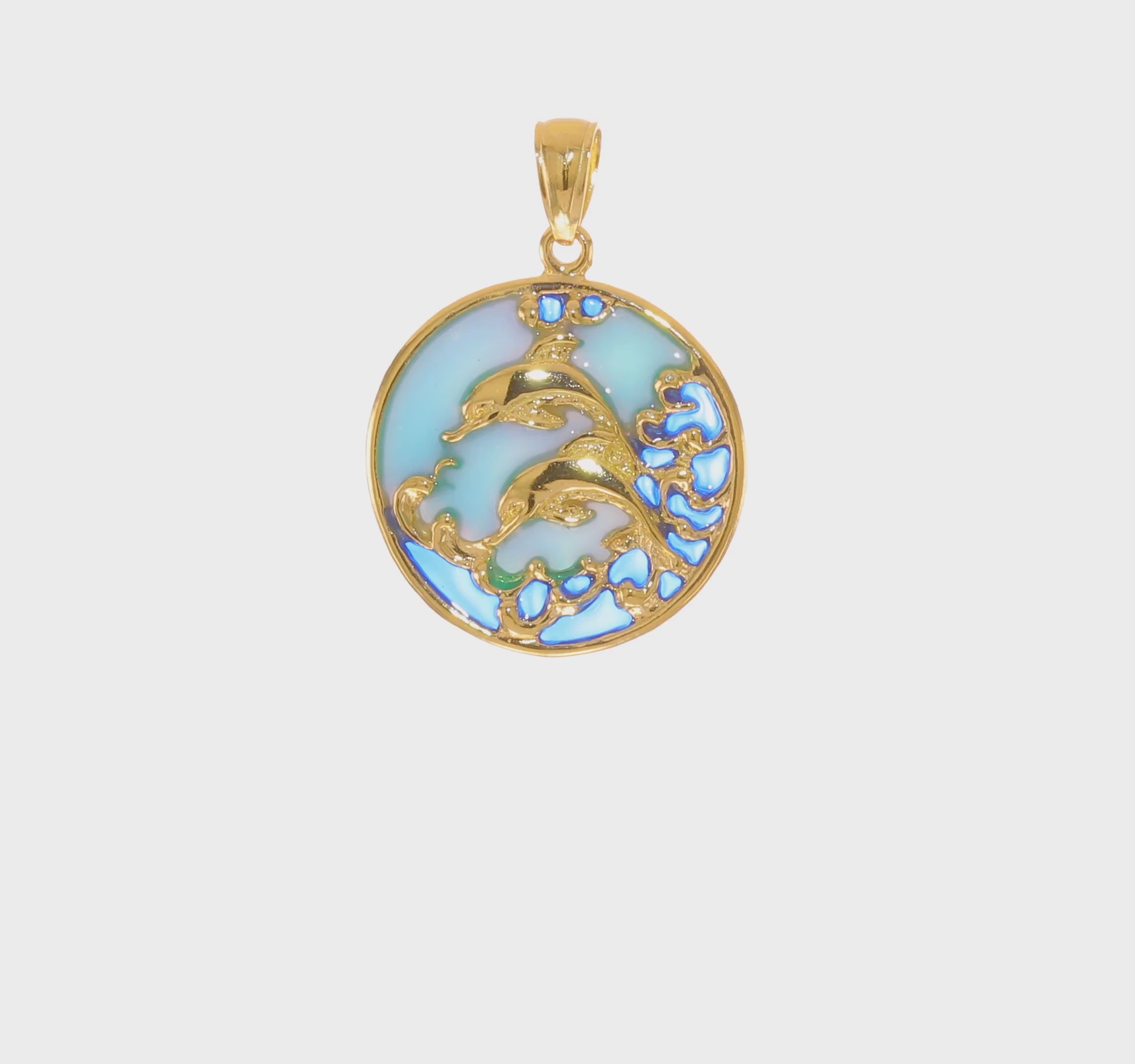 14k 2-d Dolphins W/blue Enameled Charm - Model K8619