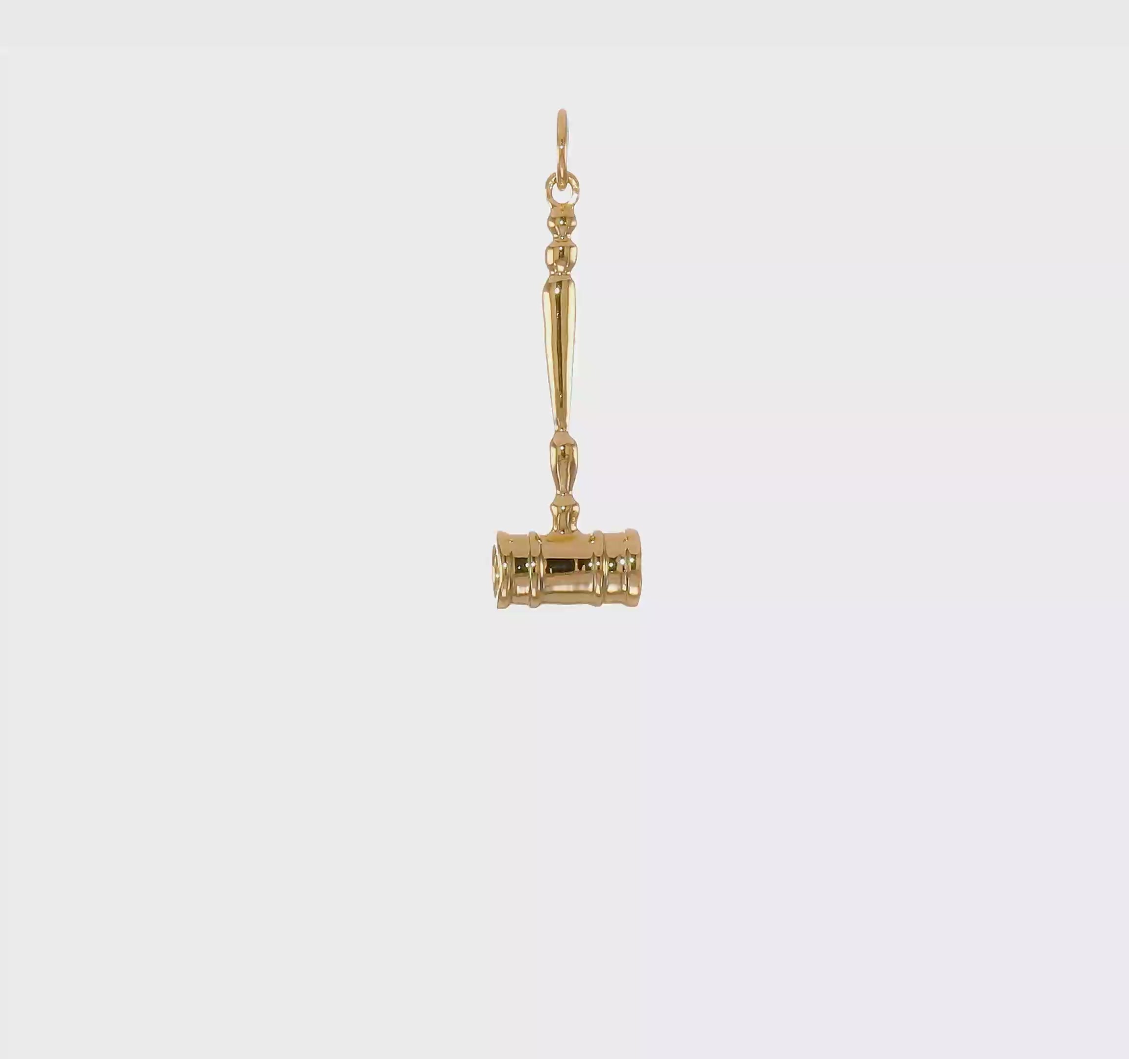 This Gold 3D Judge's Gavel Pendant is a striking piece, crafted from 14K gold with a high-polish finish. The pendant features a detailed 3D gavel design, symbolizing authority, justice, and order. The gavel is a powerful symbol in legal traditions, representing the judge's power to maintain order and uphold the law. It's a meaningful accessory for legal professionals or those who appreciate the significance of justice and authority.