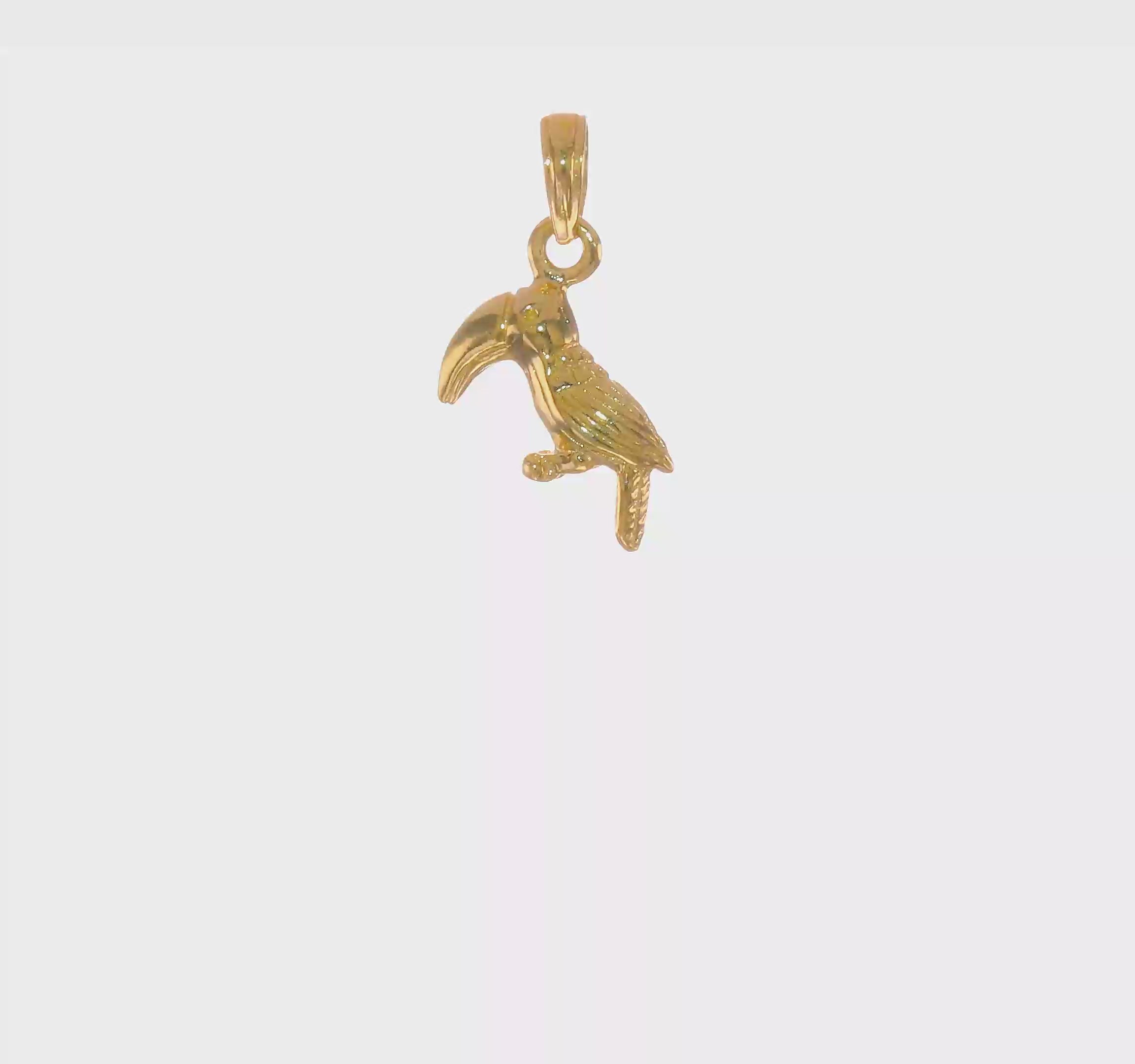 14K Gold 3D Textured/Polished Toucan Bird Pendant