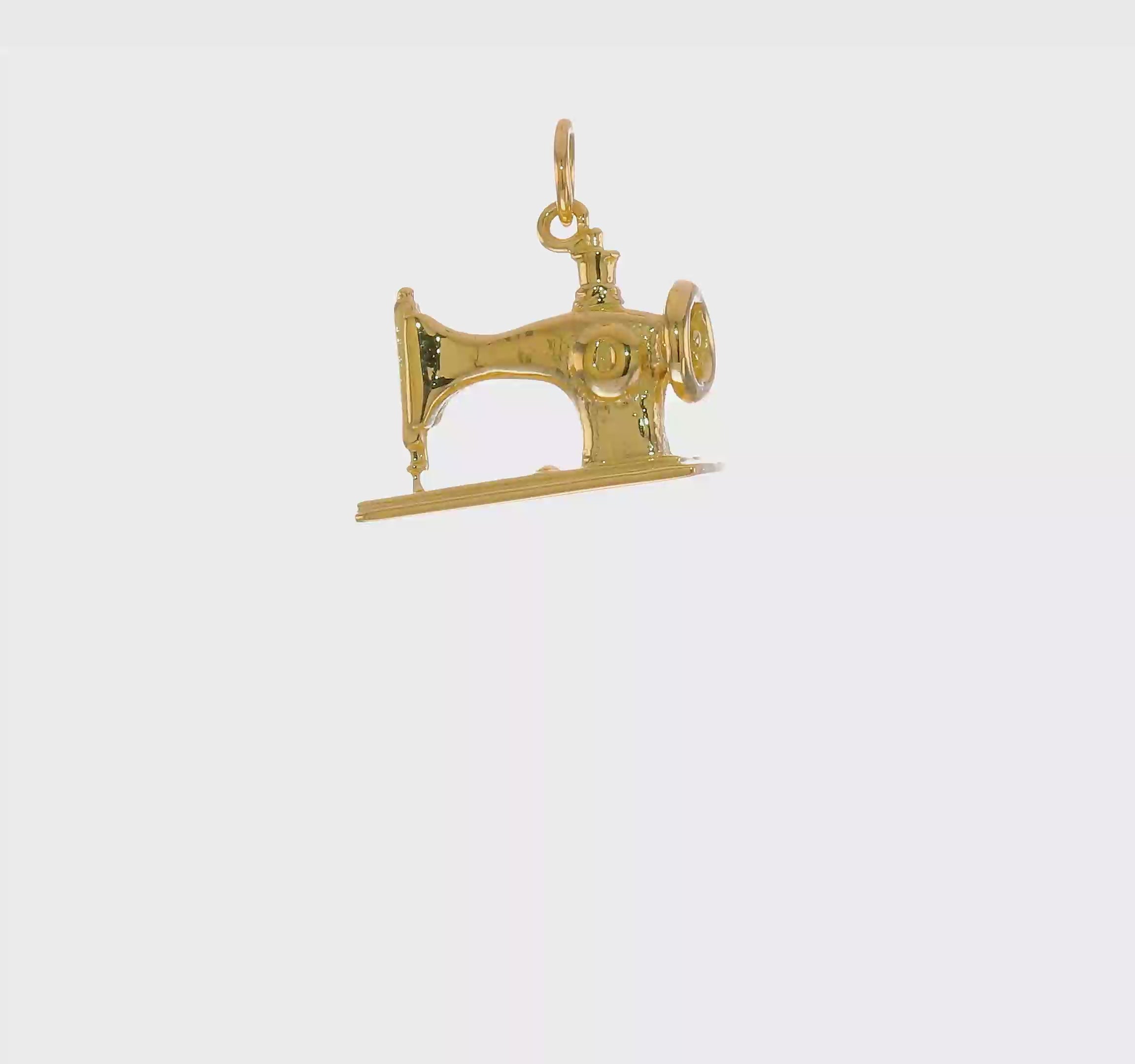 14K Gold 3D Vintage Sewing Machine Pendant