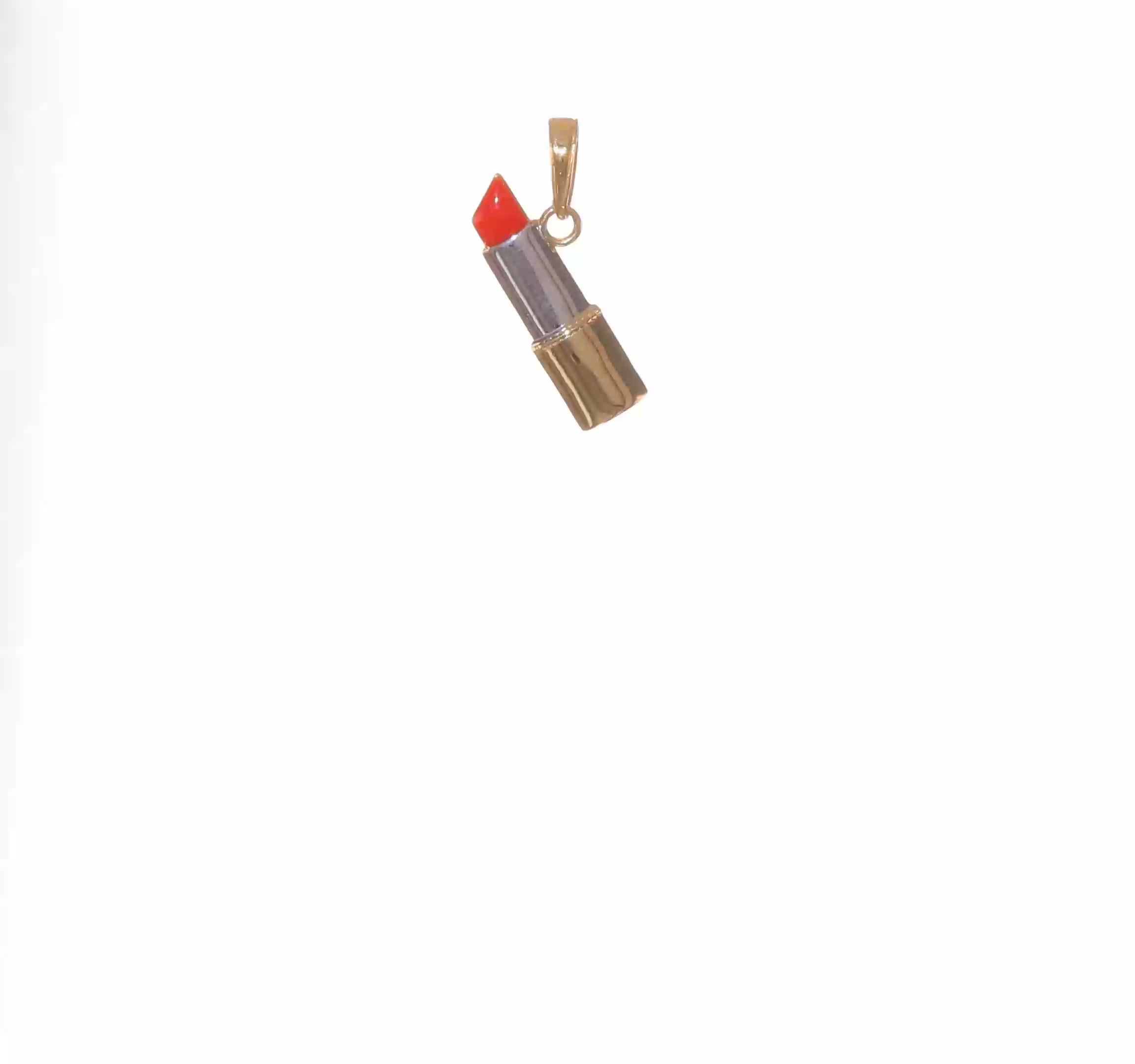 14K Gold and Rhodium Enameled Lipstick Pendant
