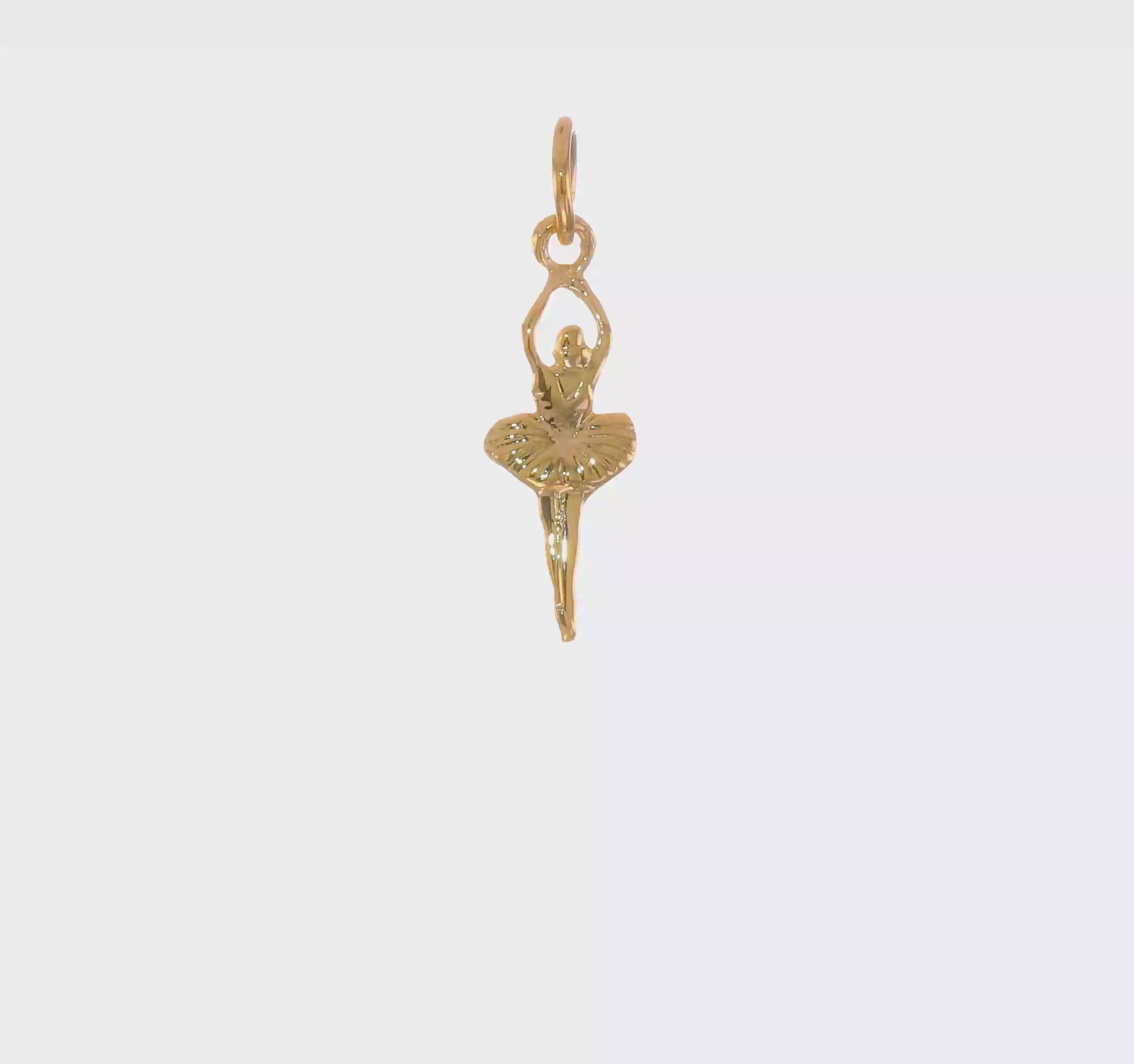 The Gold Small Ballerina Charm is crafted from genuine 14K solid gold, featuring a delicately detailed ballerina in a classic dance pose. Measuring 20mm tall and 6mm wide, this pendant shines with a high-polish finish that highlights the smooth lines and graceful movement of the dancer. The ballerina charm is a symbol of creativity, fluidity, grace, and artistic expression, making it a meaningful accessory for dancers and anyone inspired by the beauty of ballet. Tarnish-free and hypoallergenic, it’s perfect for everyday wear or as a thoughtful gift for ballet jewelry lovers.