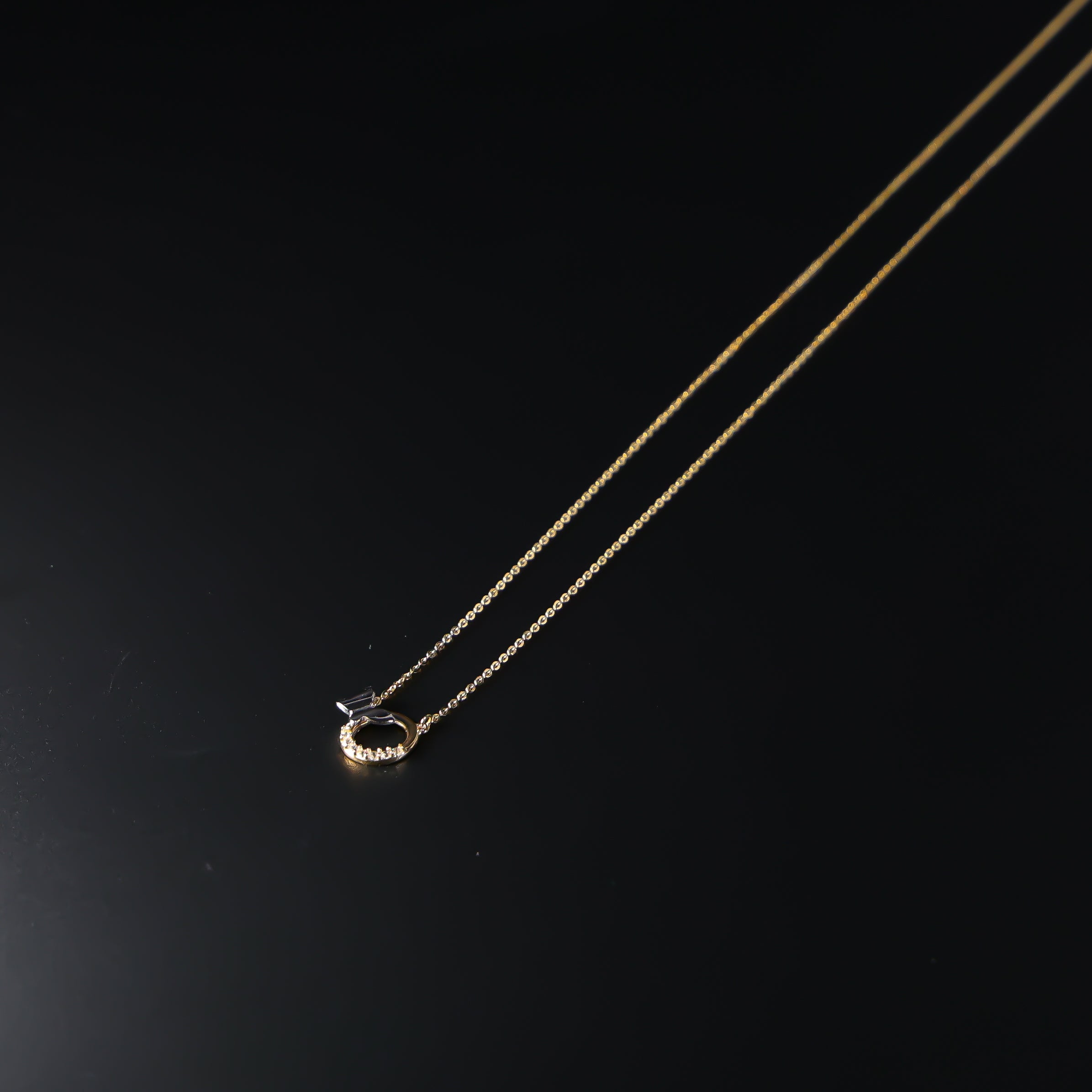 Gold Butterfly Necklace - Model NK0084 — This elegant necklace features a white gold butterfly perched on a radiant 14K yellow gold circle. The lower half of the circle sparkles with cubic zirconia stones, while the butterfly glides gracefully at the heart of the design. Symbolizing hope, transformation, and beauty, the butterfly motif adds layers of meaning to this stunning gold necklace. Hypoallergenic and tarnish-free, it is perfect for layering or as a standout statement for everyday elegance.