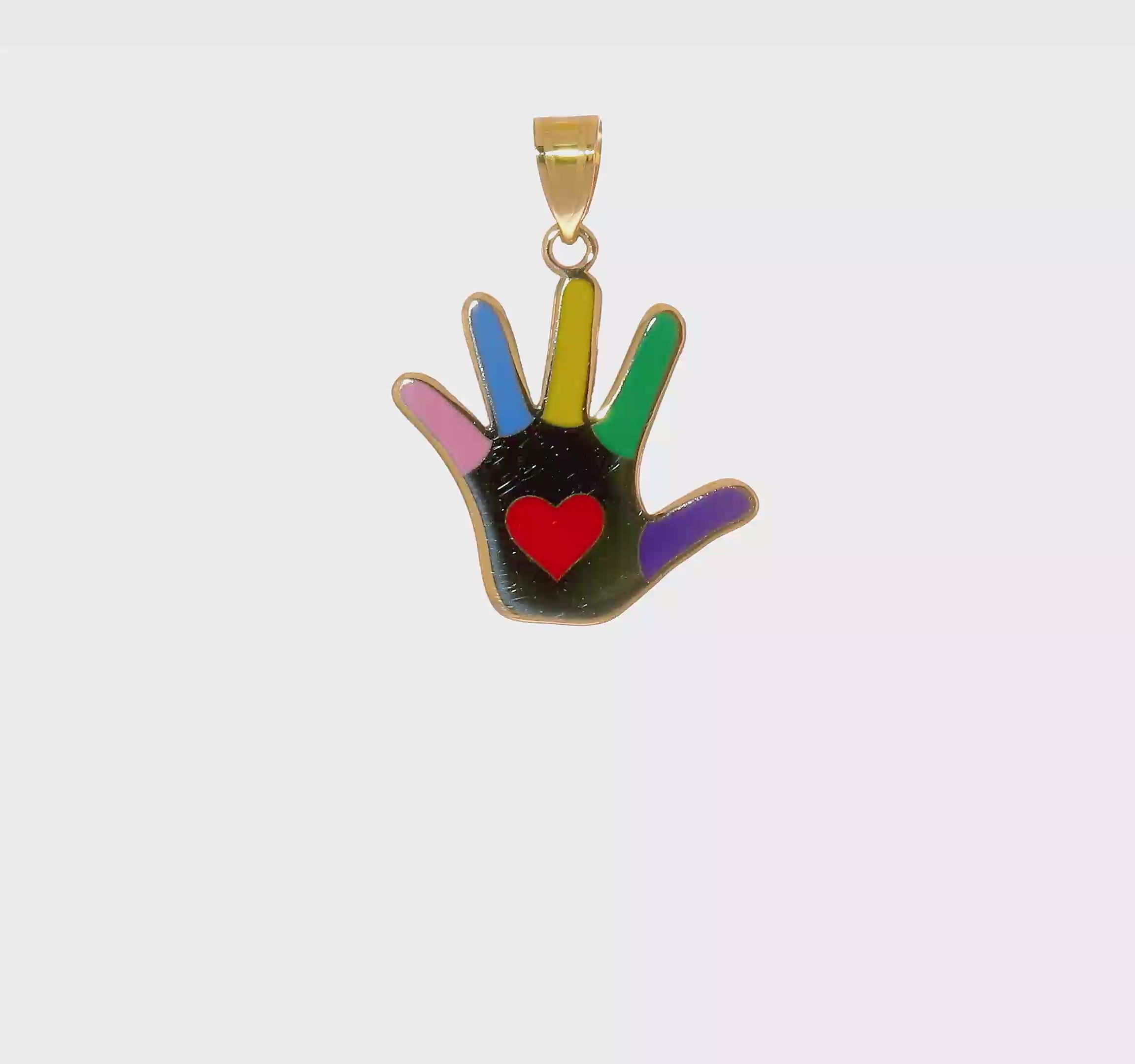 14K Gold Colorful Enameled Autism Awareness Heart Handprint Pendant