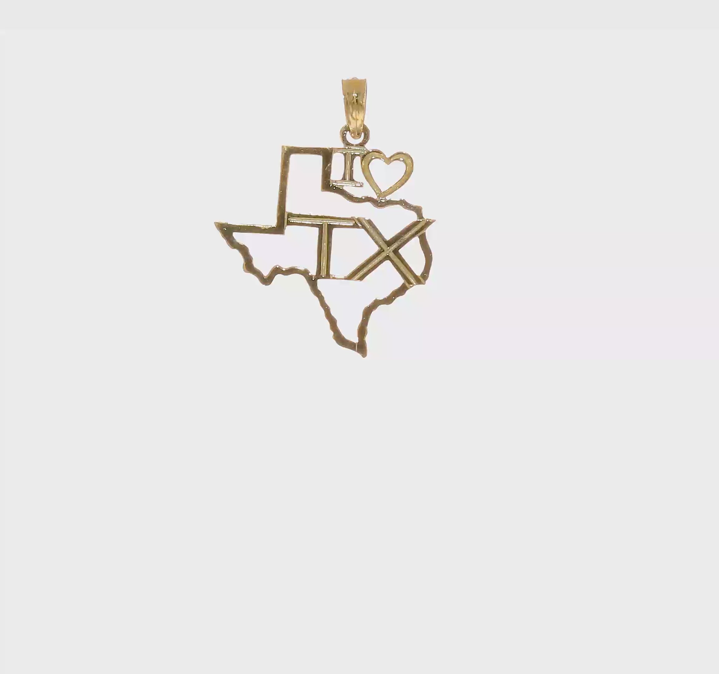 14K Gold 'I Love Texas' State Map Pendant - Model D1190