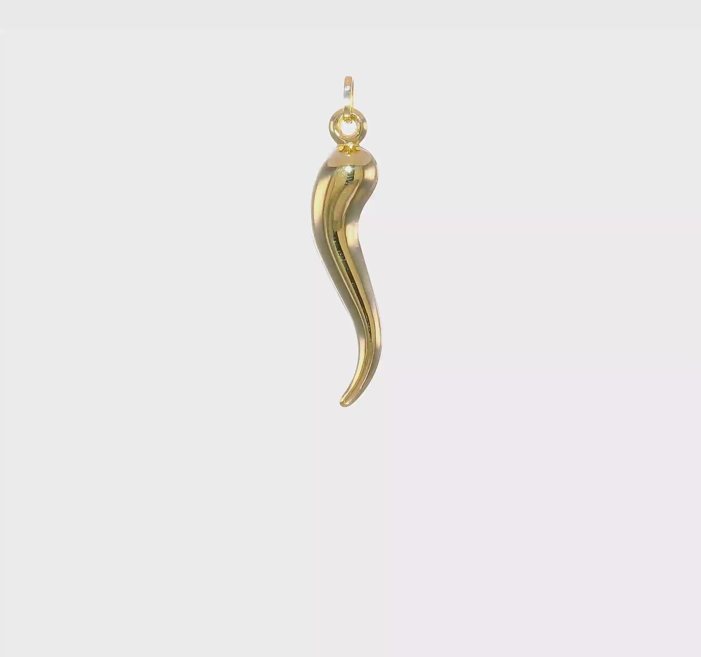 14K Gold Large 3D Italian Horn Charm - Model YC1096