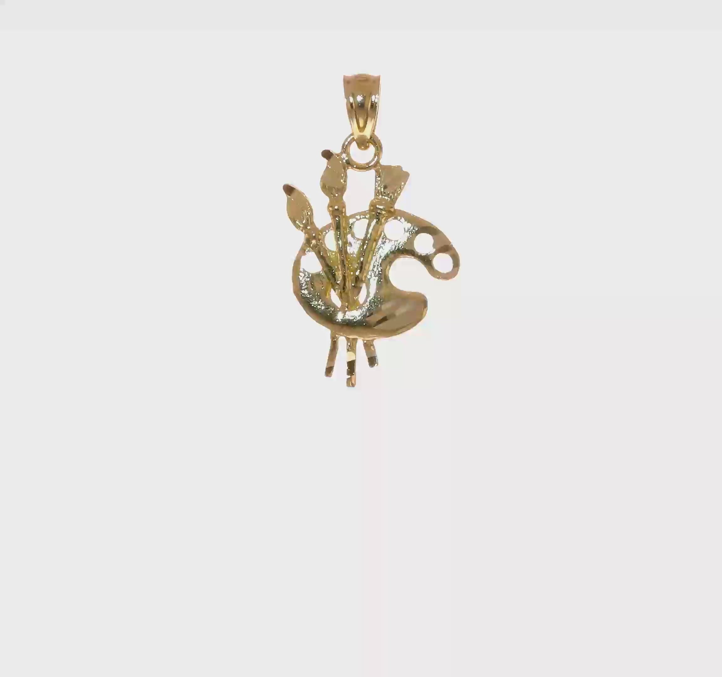 Inspire creativity with our Gold Paint Palette Pendant, a beautifully crafted piece that celebrates the artistic spirit. Made from high-quality 14K gold, this pendant features a detailed paint palette accompanied by miniature brushes, complete with intricate diamond-cut accents that enhance its artistic flair. The polished finish highlights the textured details of the paint blobs and the delicate bristles of the brushes, making it a standout piece of jewelry that radiates creativity and passion for the arts. Perfect for artists or art lovers, this pendant is both a stylish accessory and a meaningful tribute to the world of art.
