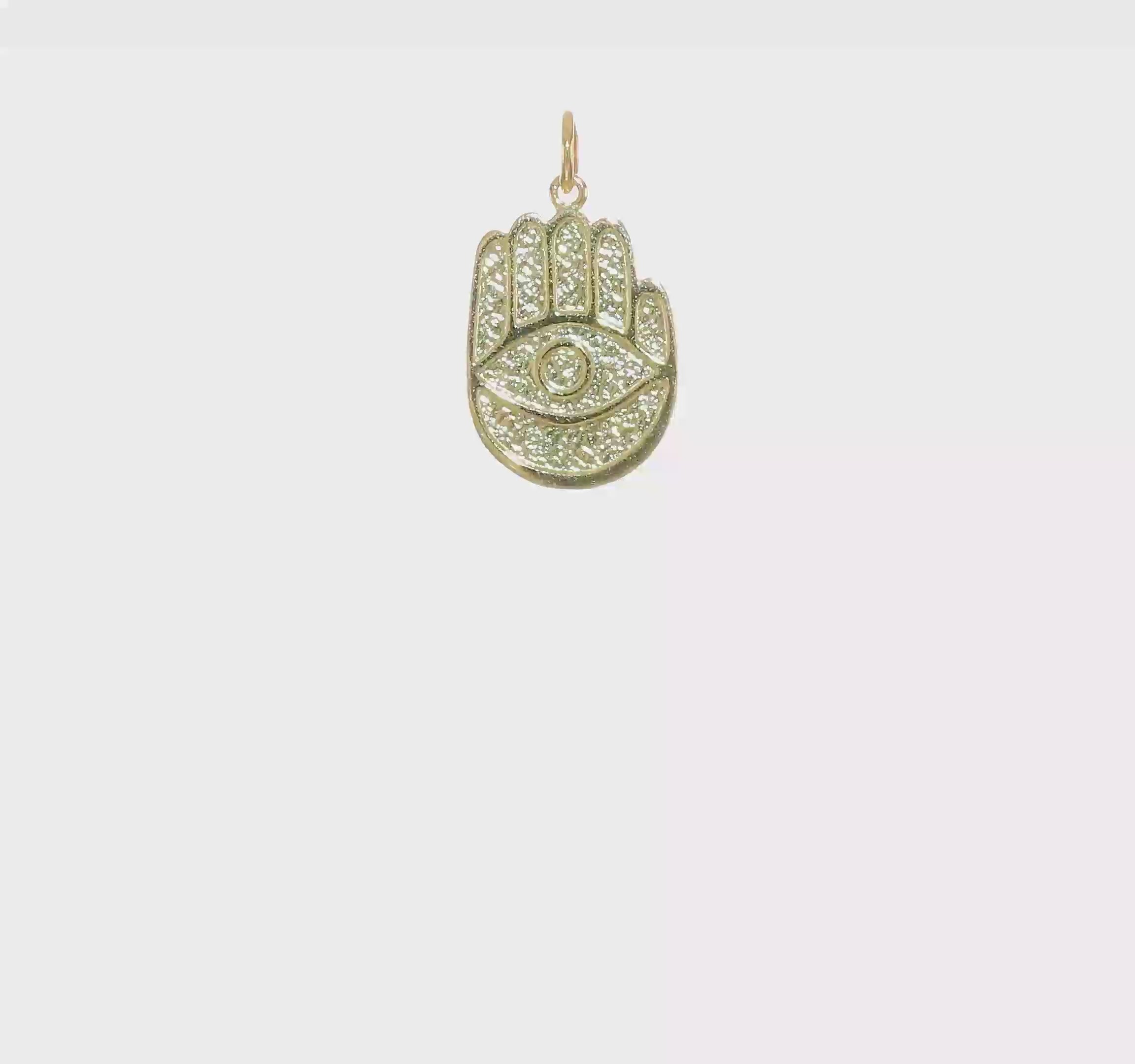 Embrace protection and style with the 14K Gold Polished Hamsa Hand Pendant - Model 14LIPD98Y. This pendant features the iconic Hamsa hand, symbolizing blessings and protection, with a polished finish that highlights its intricate details, including the central eye design. Crafted in 14K gold, this elegant charm is perfect as a personal talisman or a thoughtful gift. Tarnish-free and hypoallergenic. Dimensions: 20.2 mm height, 13.5 mm width, weighing approximately 1.33 grams.