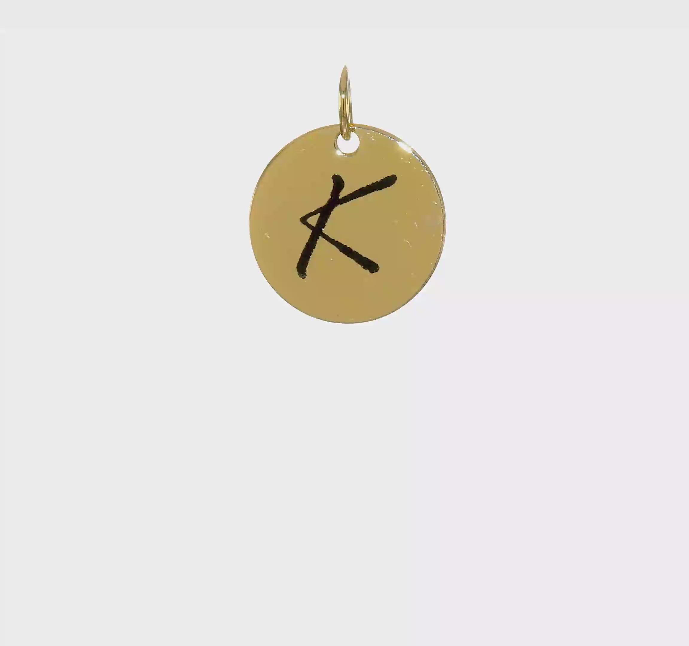 14K Gold Script Letter 'K' Circular Charm with Black Enamel