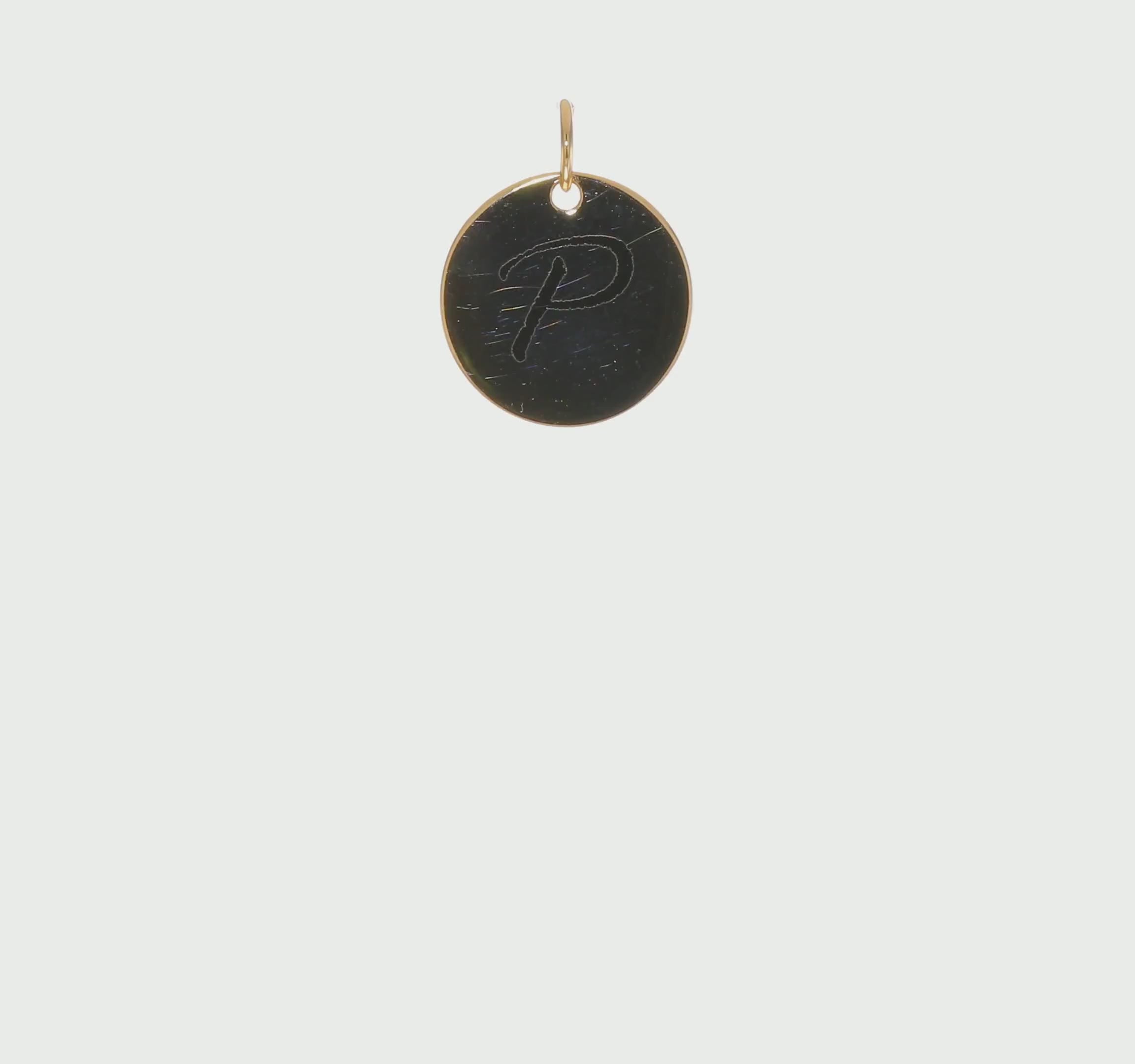14K Gold Script Letter 'P' Circular Charm - Model YC1436P