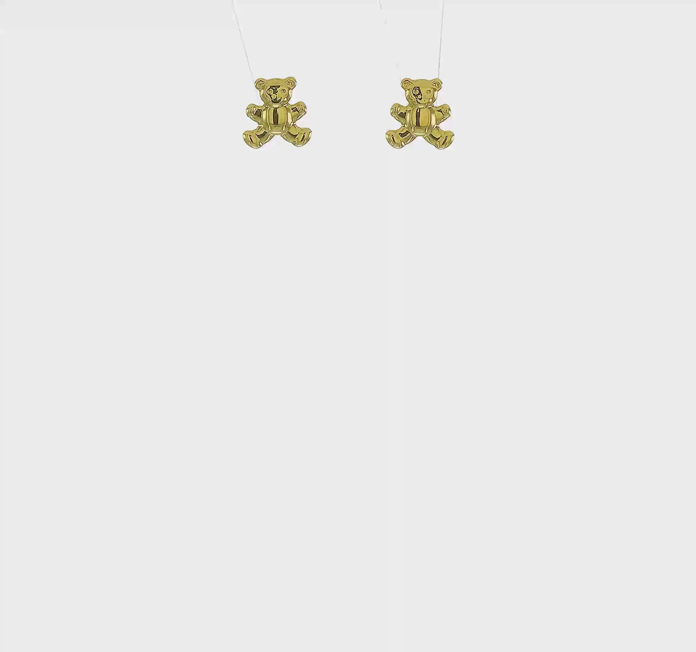 Gold Teddy Bear Post Earrings — Crafted from genuine 14K yellow gold, these adorable gold teddy bear earrings feature a playful bear silhouette with a polished finish and fine detailing. Each earring measures approximately 11mm x 10mm, offering a subtle yet charming presence on the ear. Secured with a classic post and push-back closure, they are comfortable for both kids and adults with sensitive skin. The teddy bear design is a cherished symbol of comfort, innocence, and playful memories, making these gold teddy bear earrings a sweet and meaningful gift. Hypoallergenic and tarnish-free, these gold teddy bear post earrings bring enduring shine and joy to any jewelry collection.