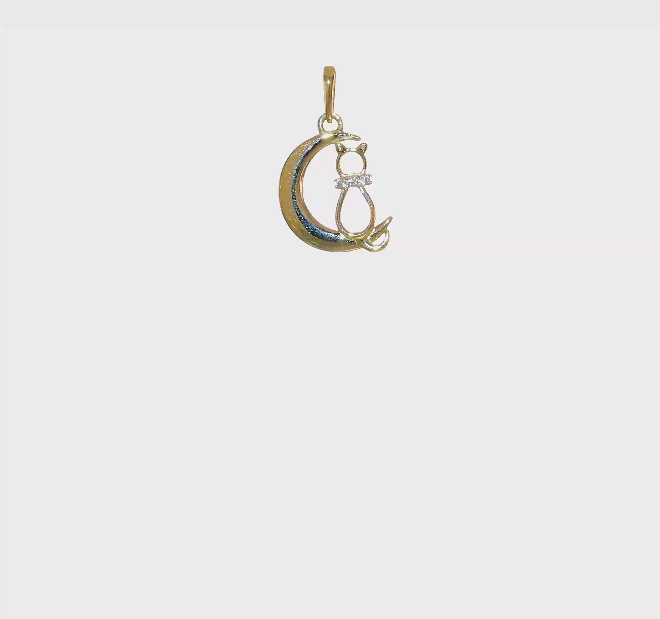 The Gold CZ Cat and Moon Pendant is crafted from genuine 14K gold, featuring a playful cat silhouette perched on a crescent moon. The cat adorned with sparkling cubic zirconia stones, creating a luminous effect that captures the magic of the night sky. The high-polish finish enhances the warm gold tones, while the delicate design makes it perfect for daily wear or as a special gift. Symbolically, the cat represents curiosity, independence, and intuition, while the crescent moon embodies transformation and the cycles of life. Tarnish-free and hypoallergenic, this gold cat and moon pendant is ideal for anyone who loves celestial jewelry or wants to celebrate the balance of mystery and light.