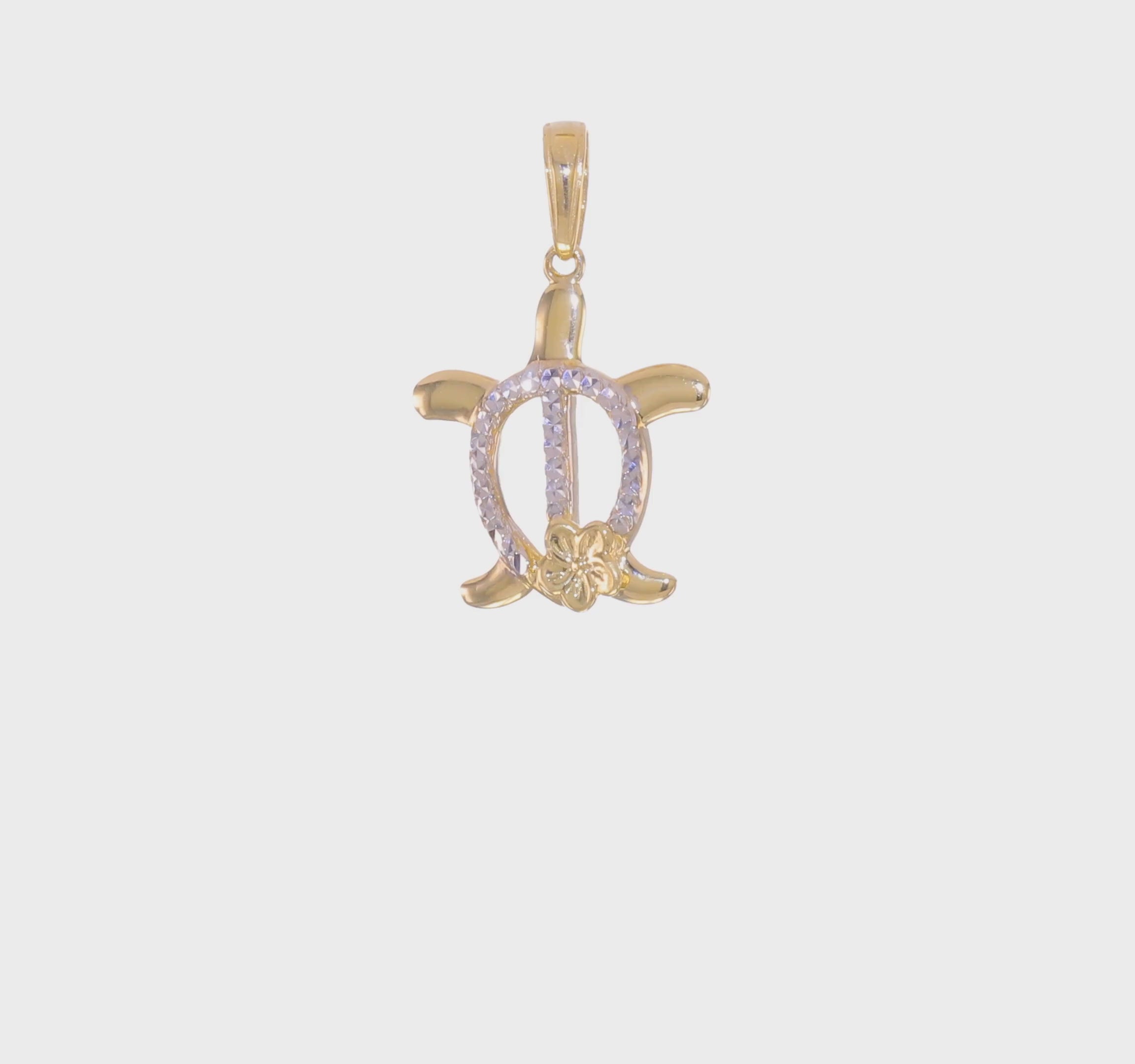 Yellow and White 14K Gold Diamond-Cut Sea Turtle Pendant