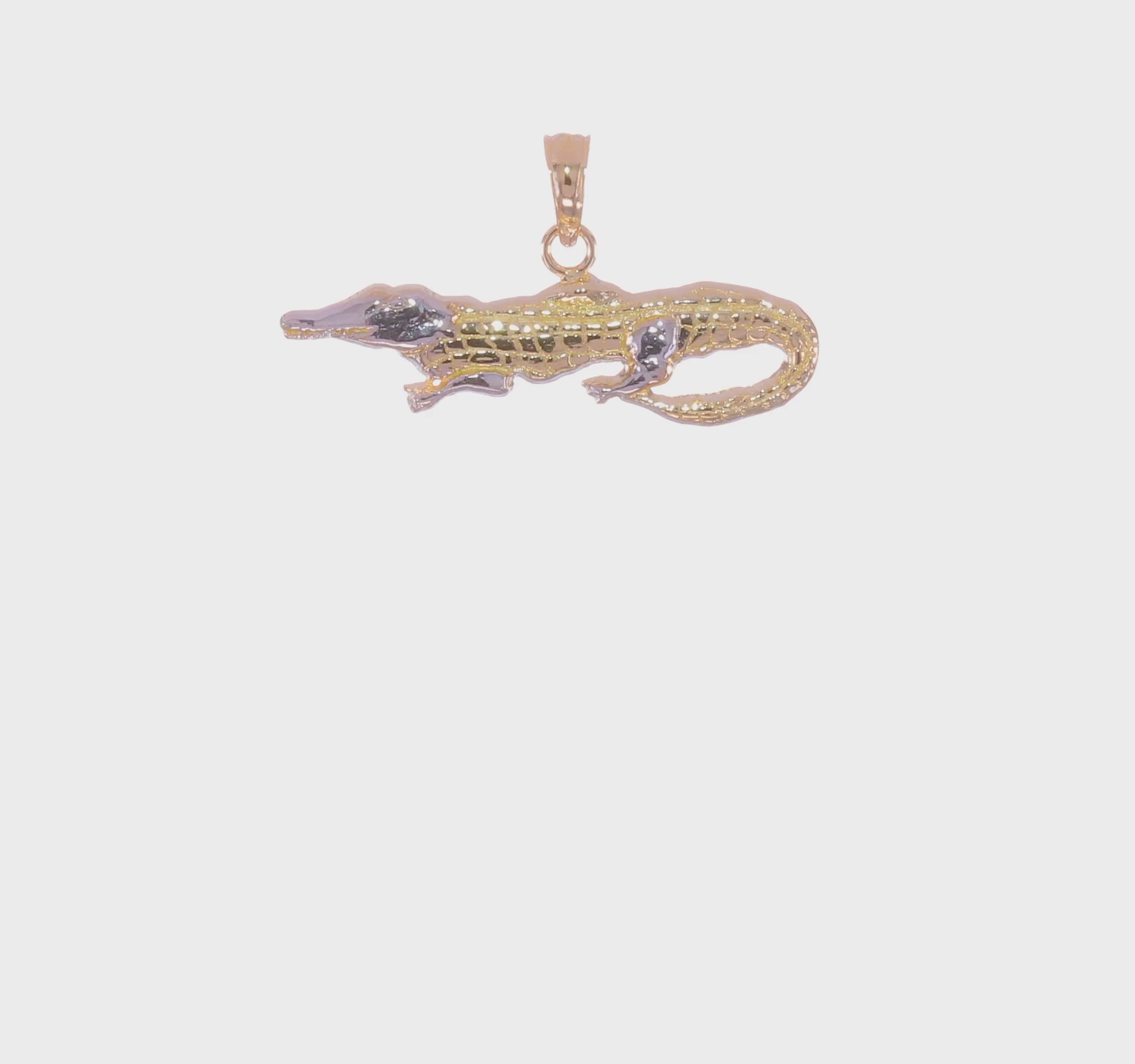 The Yellow and White Gold Alligator Charm features a sleek 2D design crafted from 14K yellow gold with rhodium-plated white gold accents, creating a striking dual-tone look. Measuring 10.5mm tall and 24mm wide, this polished charm highlights the alligator’s textured scales and sharp contours. Symbolizing strength, resilience, and protection, it’s a bold piece for wildlife jewelry lovers. Tarnish-free and hypoallergenic, perfect for everyday wear or as a unique gift.