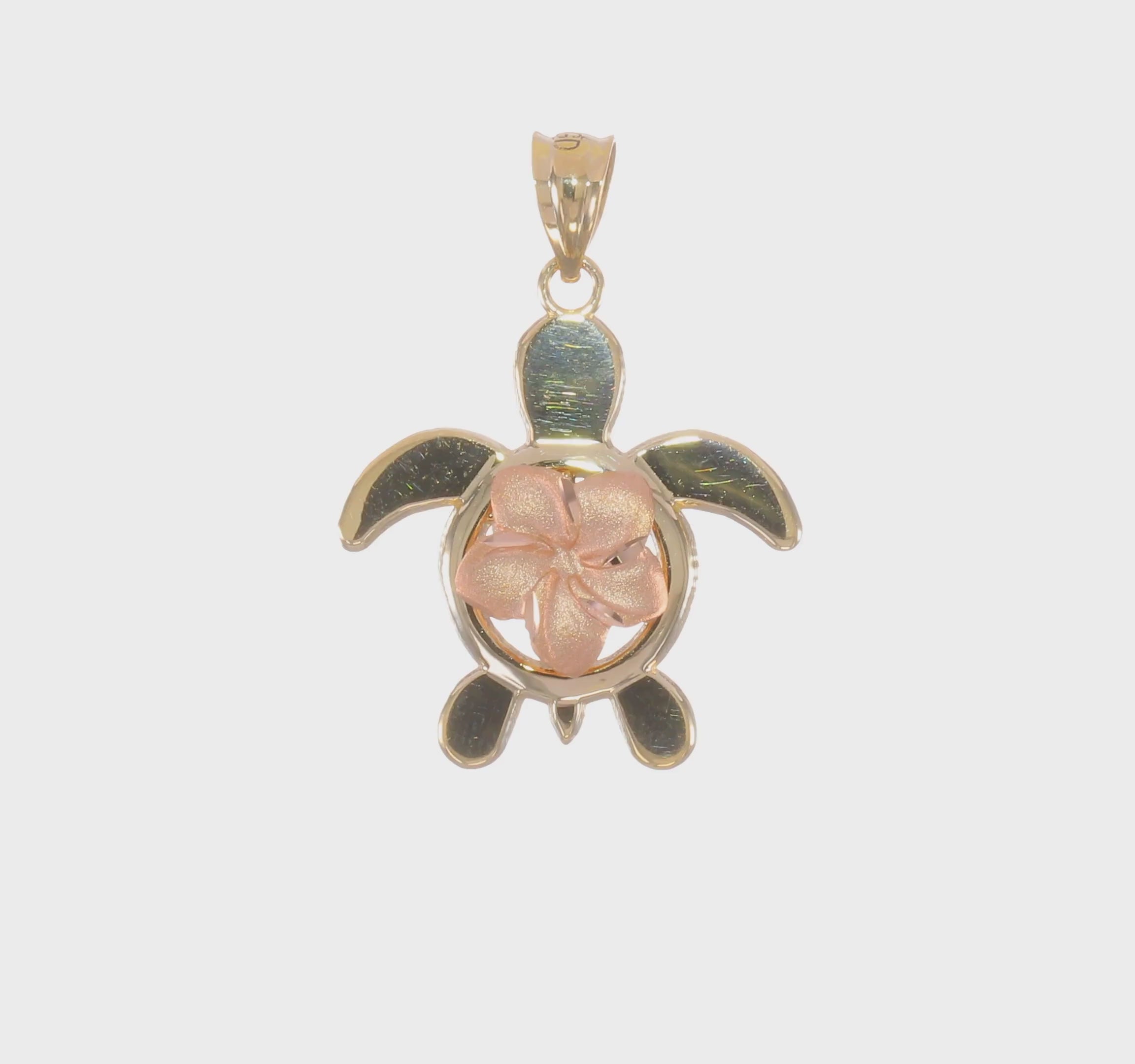 Rose and Yellow 14K Gold Rose Plumeria Turtle Pendant