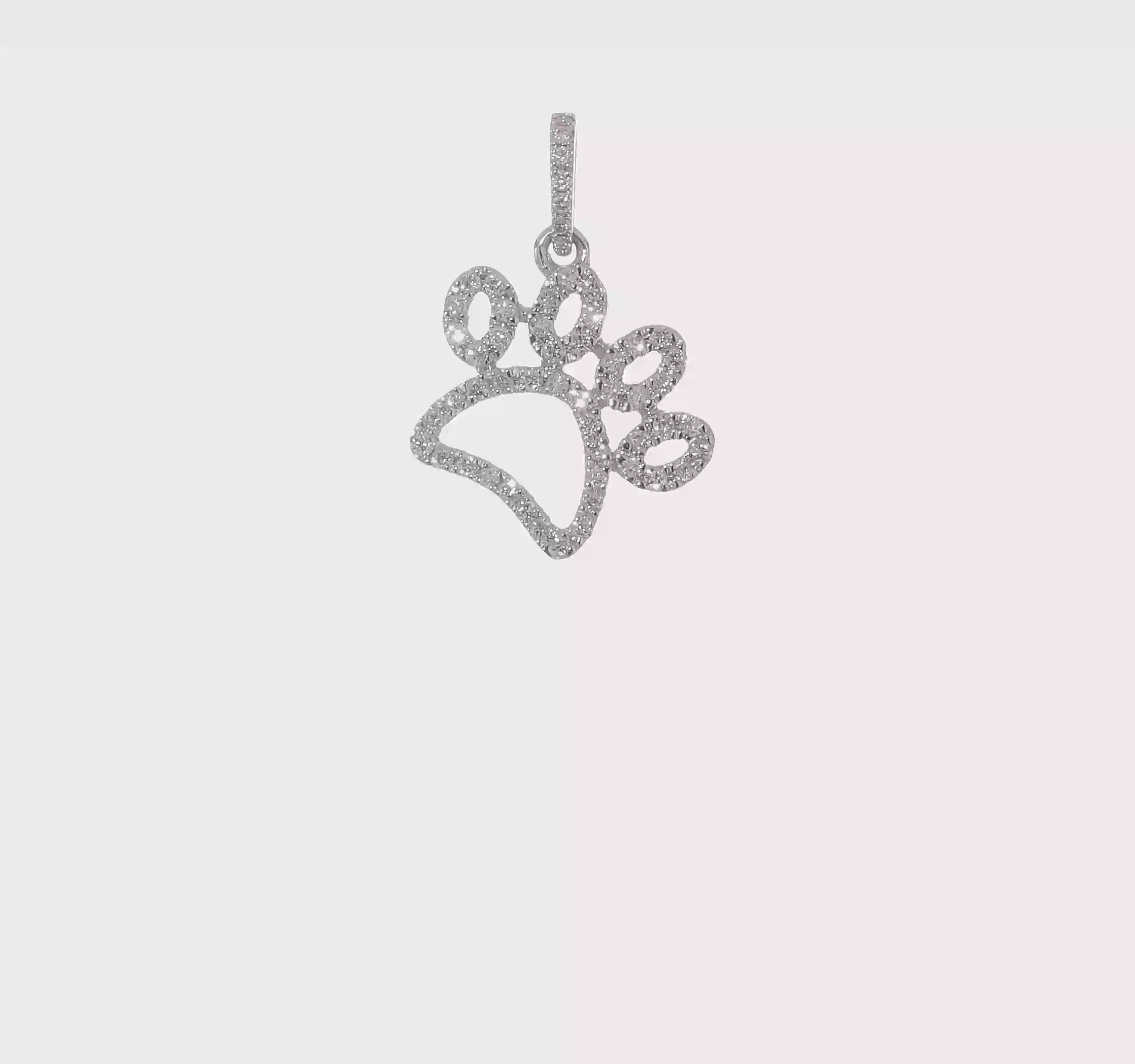 The White Gold 1/4ct. Diamond Paw Print Pendant is crafted from genuine 14K white gold in the shape of a paw, fully covered in sparkling diamonds totaling approximately 0.26 carats. Each pad and toe is set with brilliant diamonds, giving this pendant a radiant, eye-catching shine. The diamond paw print is a symbol of unconditional love and loyalty, making it a meaningful accessory for pet lovers or anyone who cherishes the special bond with their furry friend. Tarnish-resistant, hypoallergenic, and designed for lasting brilliance, this white gold diamond pendant is perfect for both everyday elegance and heartfelt gifting.