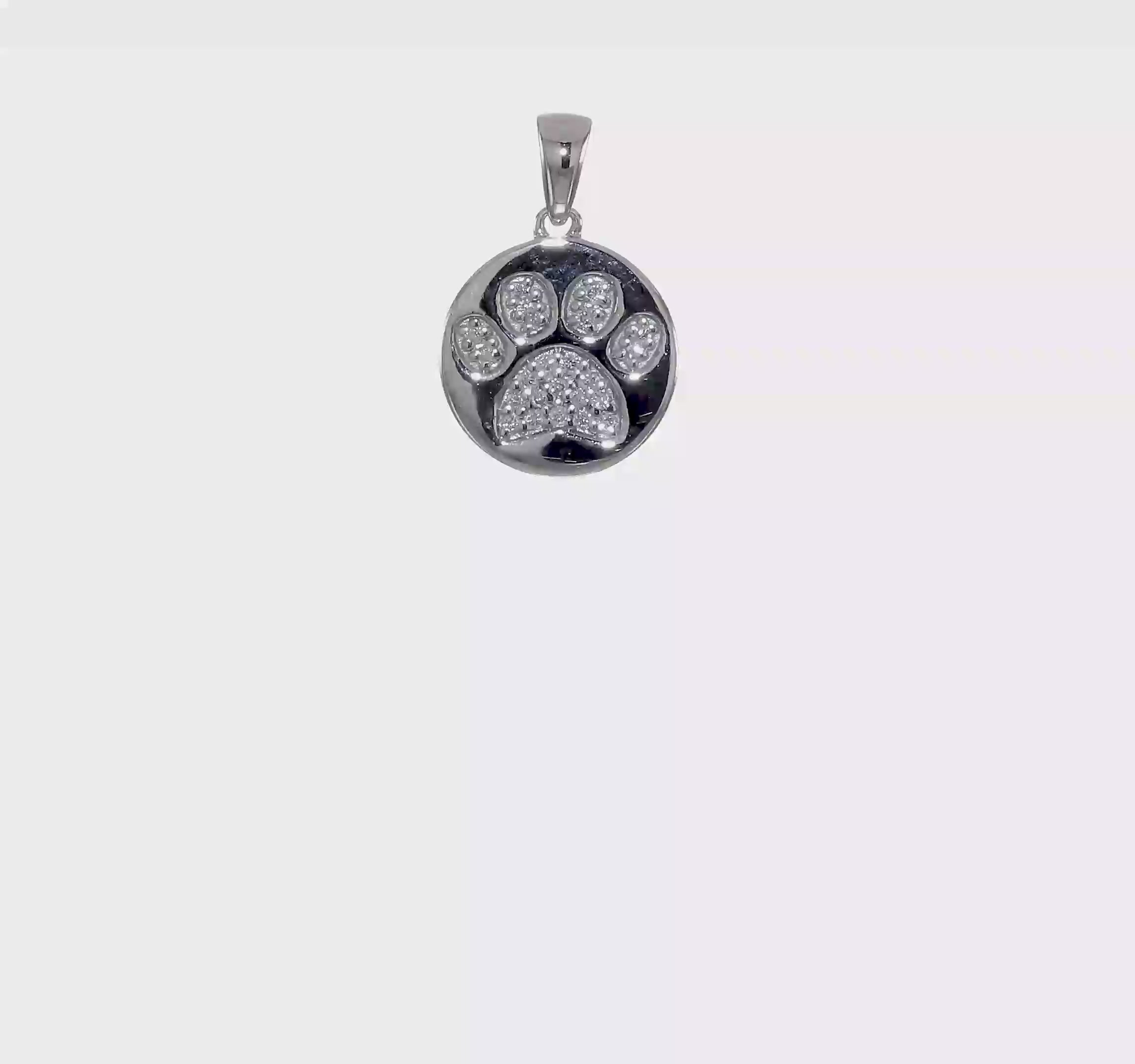The White Gold Diamond Paw Print Pendant is crafted from genuine 14K white gold and features a circular charm with a beautifully detailed paw print set with sparkling diamonds. Each toe and pad is accented with brilliant stones, creating a radiant, eye-catching design. The polished white gold frame adds elegance and shine, making this pendant a sophisticated tribute to the love and loyalty of pets. The paw print symbolizes companionship, joy, and the lasting bond between pet and owner, making this diamond paw print pendant a meaningful accessory for animal lovers or a heartfelt gift. Tarnish-free and hypoallergenic, it’s perfect for daily wear or special occasions.