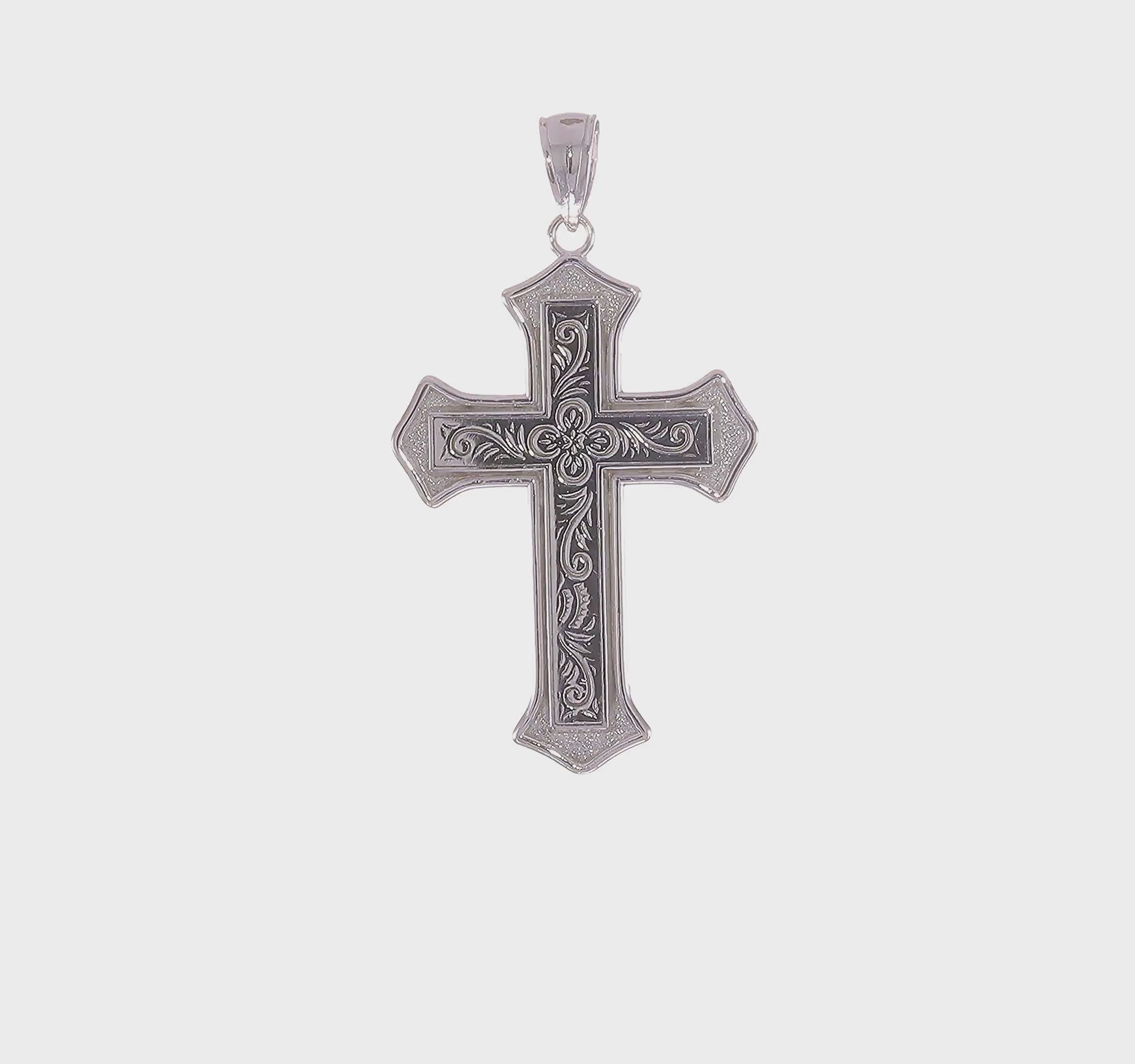 14K White Gold Filigree Center Block Cross Charm - Model K8535W