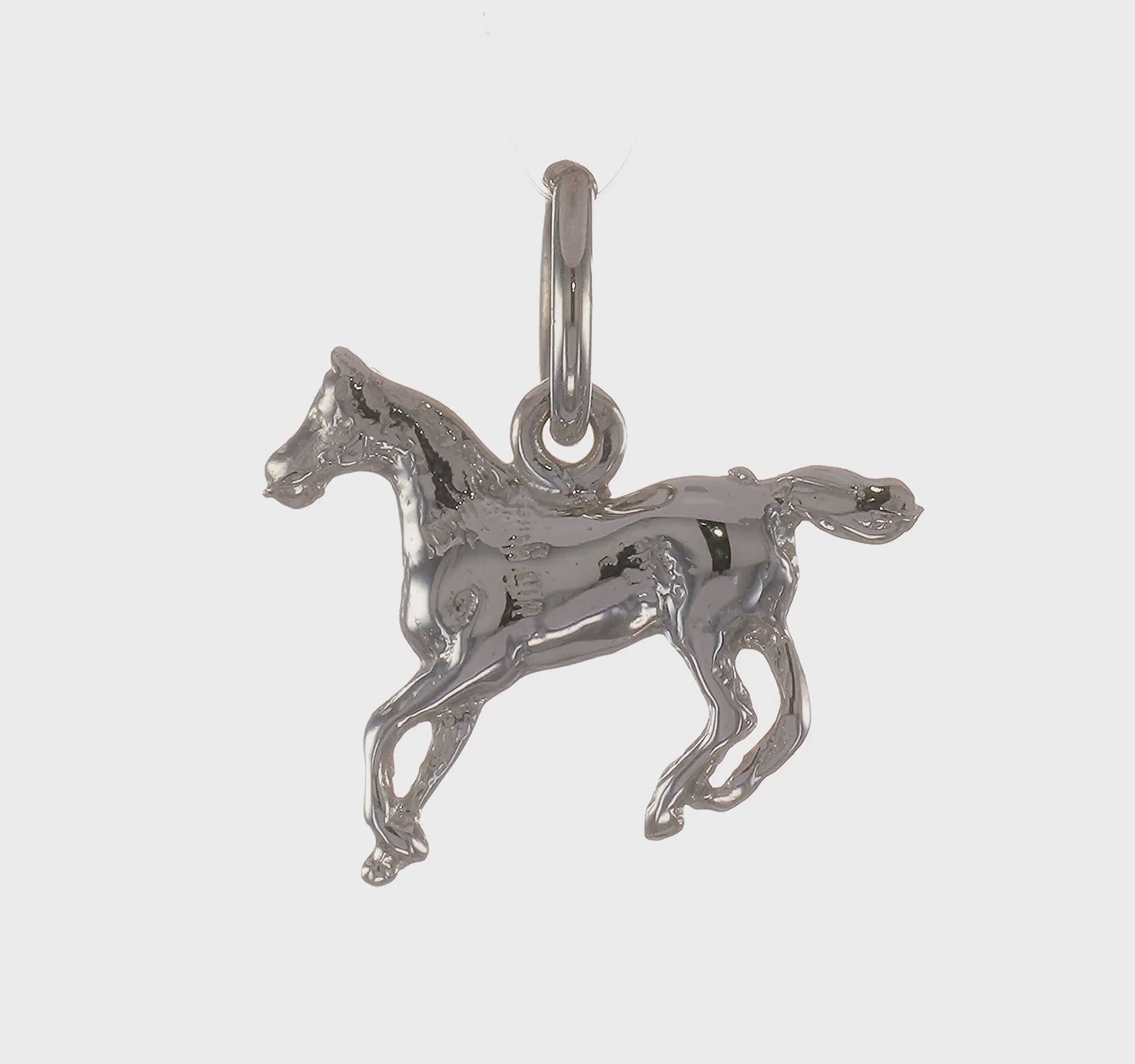 The White Gold Horse Pendant is crafted from genuine 14K white gold, featuring a polished, lifelike horse in a dynamic pose. Its sleek silhouette highlights the horse’s muscular build and flowing mane, brought to life with a radiant high-polish finish. Compact at 13mm by 13mm, this pendant captures the spirit and elegance of the horse-a symbol of strength, freedom, and independence in jewelry. Tarnish-free and hypoallergenic, it’s perfect for daily wear or as a meaningful gift for equestrian jewelry lovers.