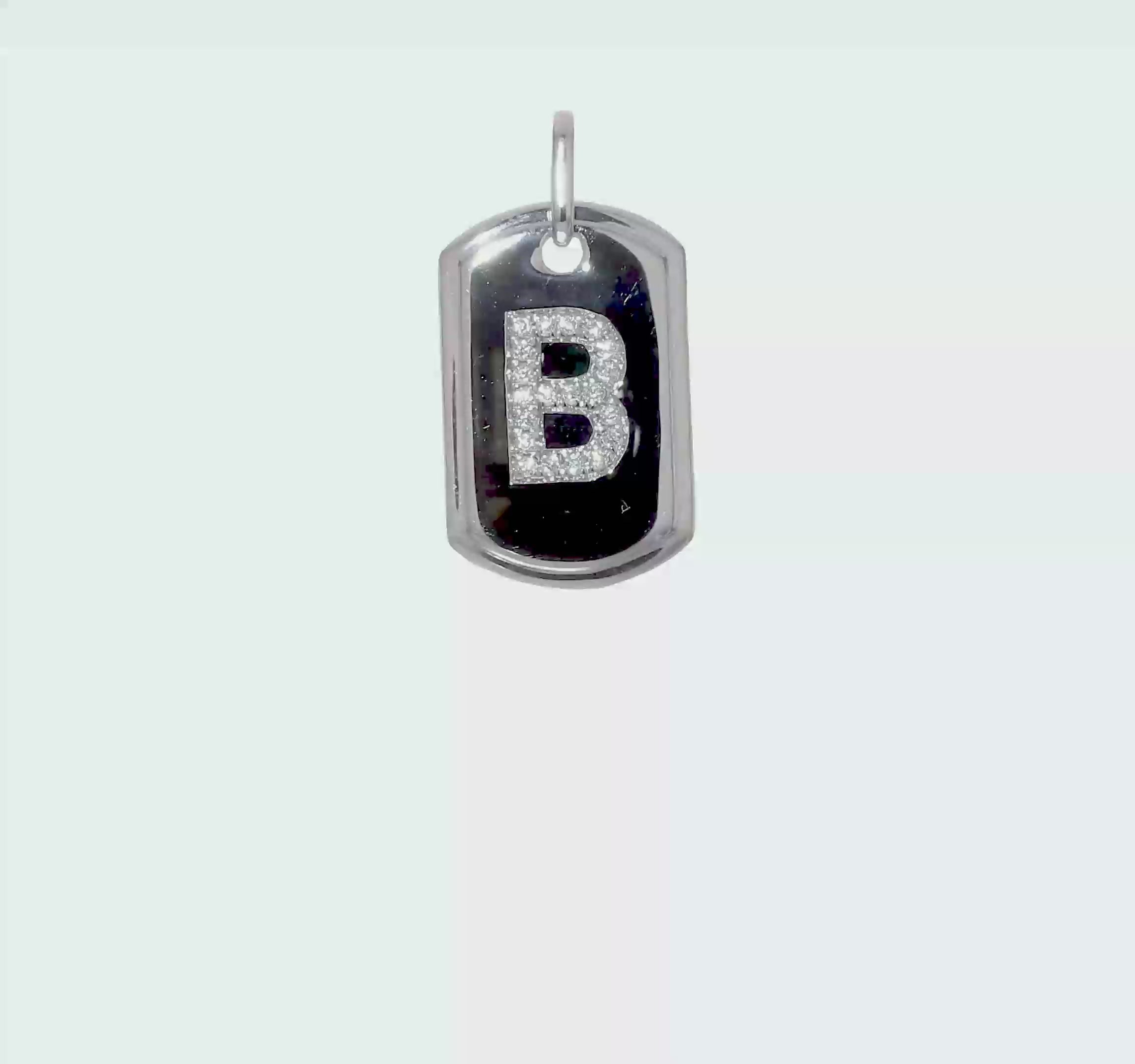 White 14K Gold Initial "B" Dog Tag Pendant With Diamonds