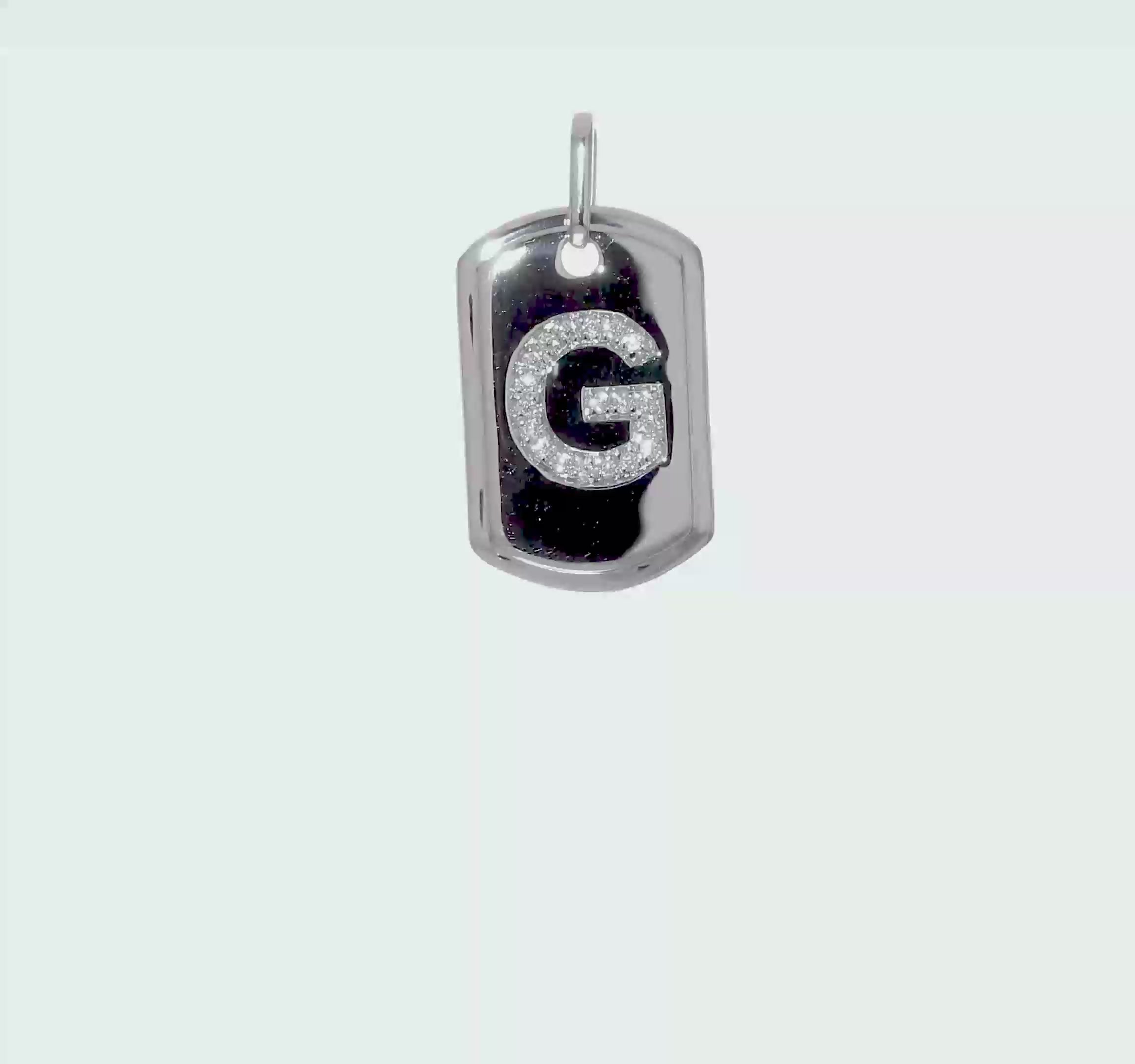 White 14K Gold Initial "G" Dog Tag Pendant With Diamonds