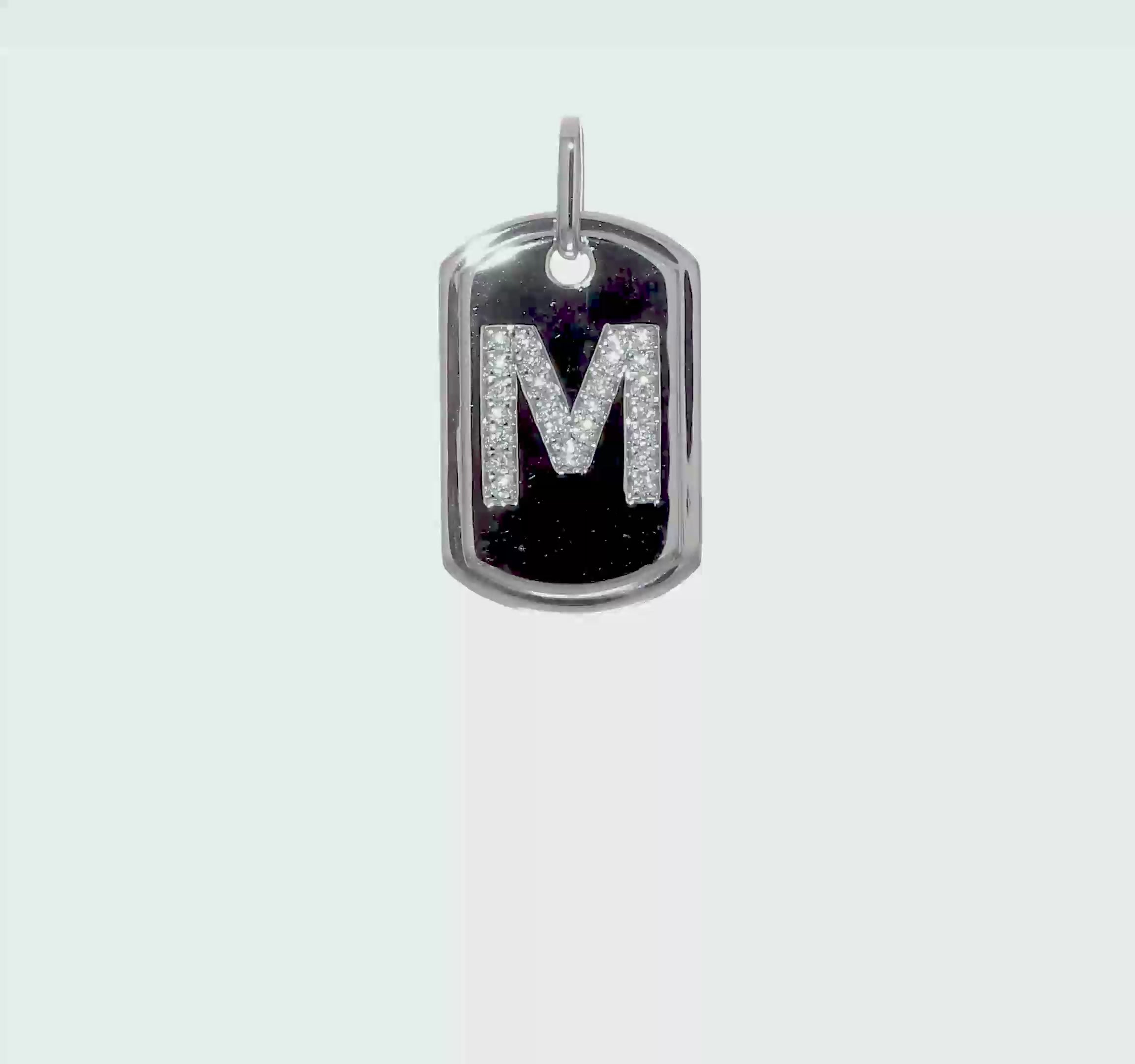 White 14K Gold Initial "M" Dog Tag Pendant With Diamonds