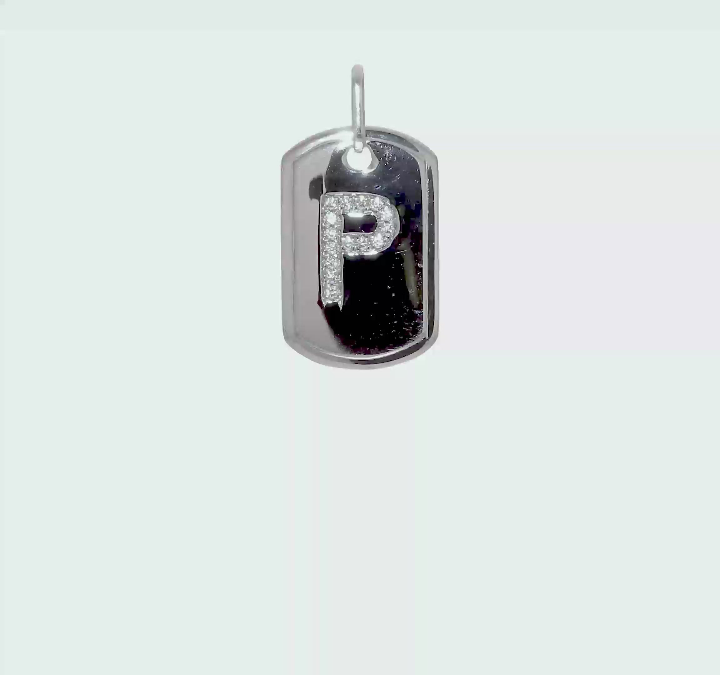 White 14K Gold Initial "P" Dog Tag Pendant With Diamonds