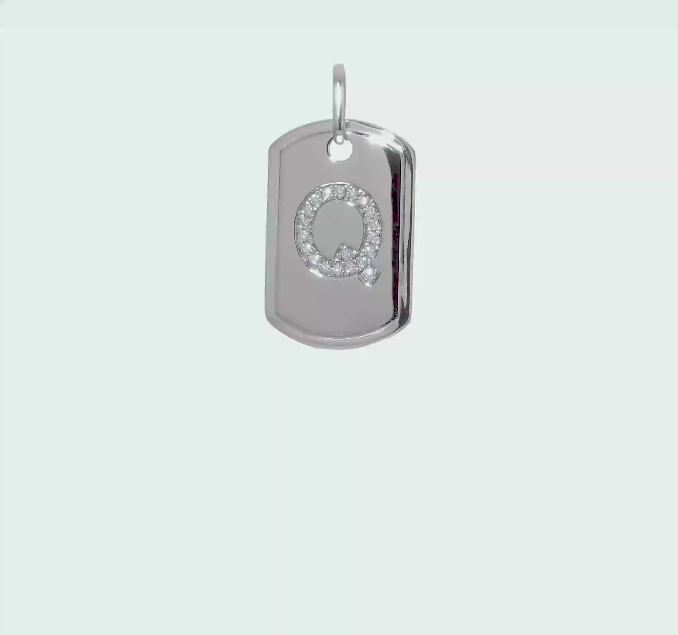 White 14K Gold Initial "Q" Dog Tag Pendant With Diamonds