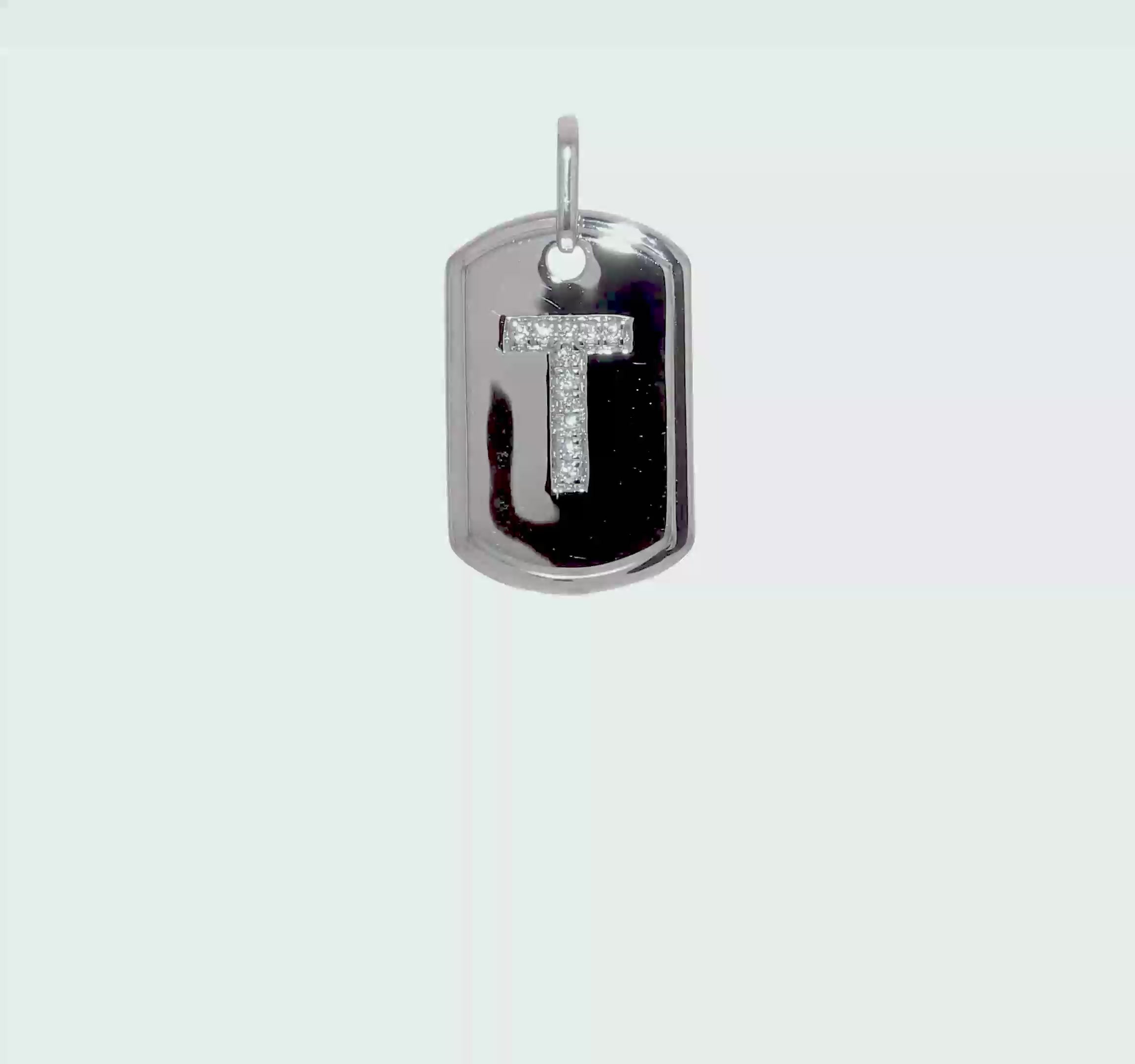 White 14K Gold Initial "T" Dog Tag Pendant With Diamonds