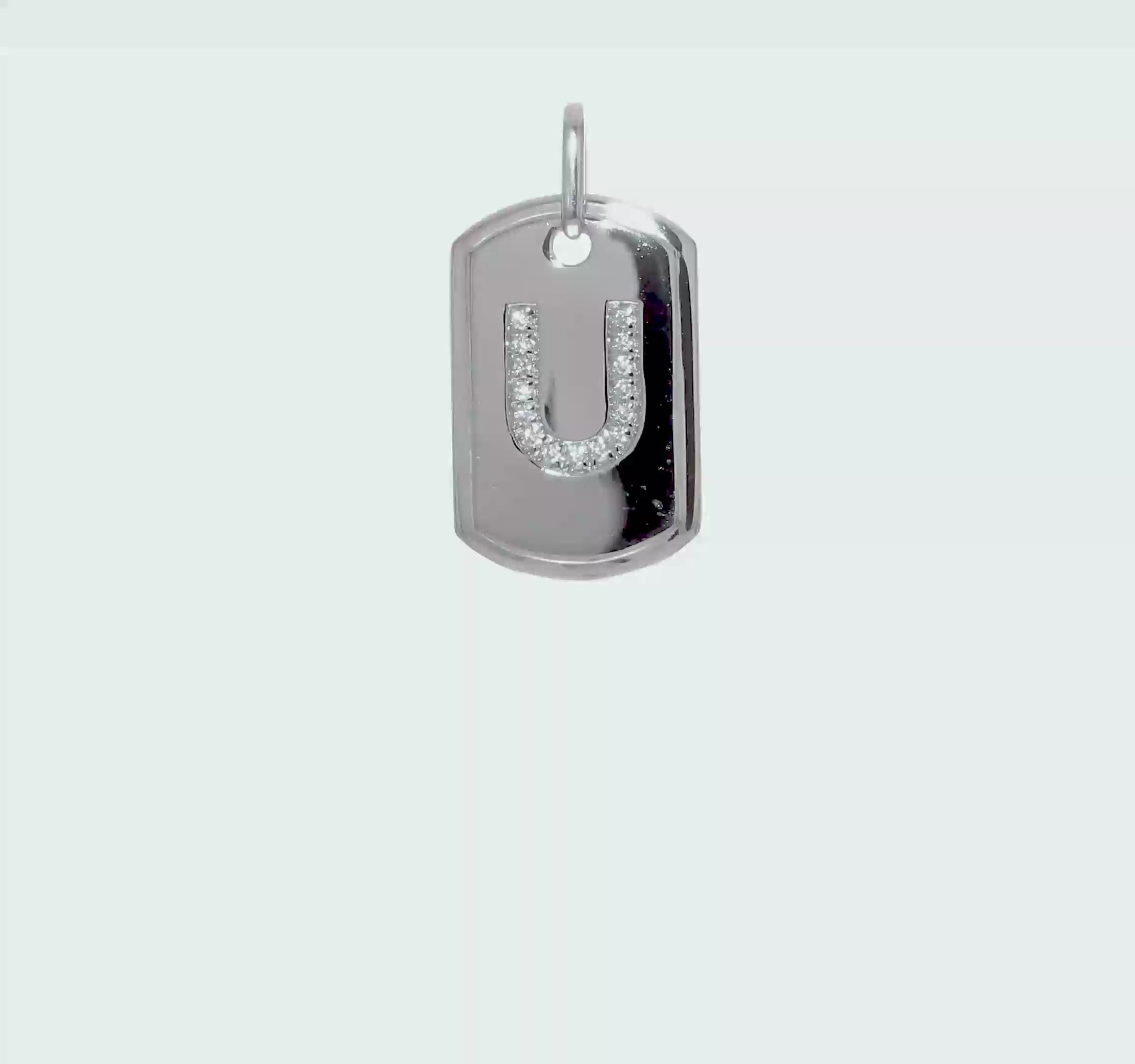 White 14K Gold Initial "U" Dog Tag Pendant With Diamonds