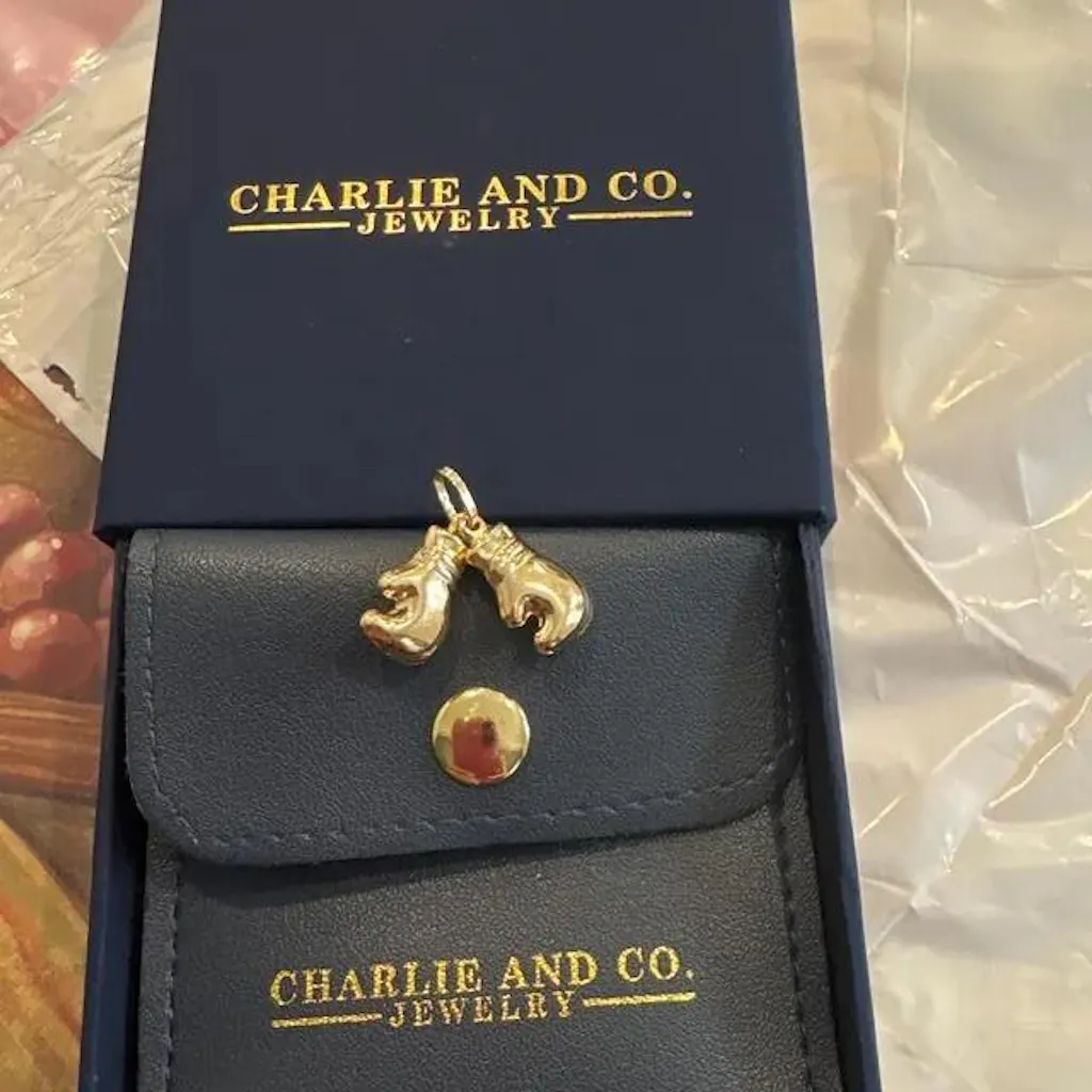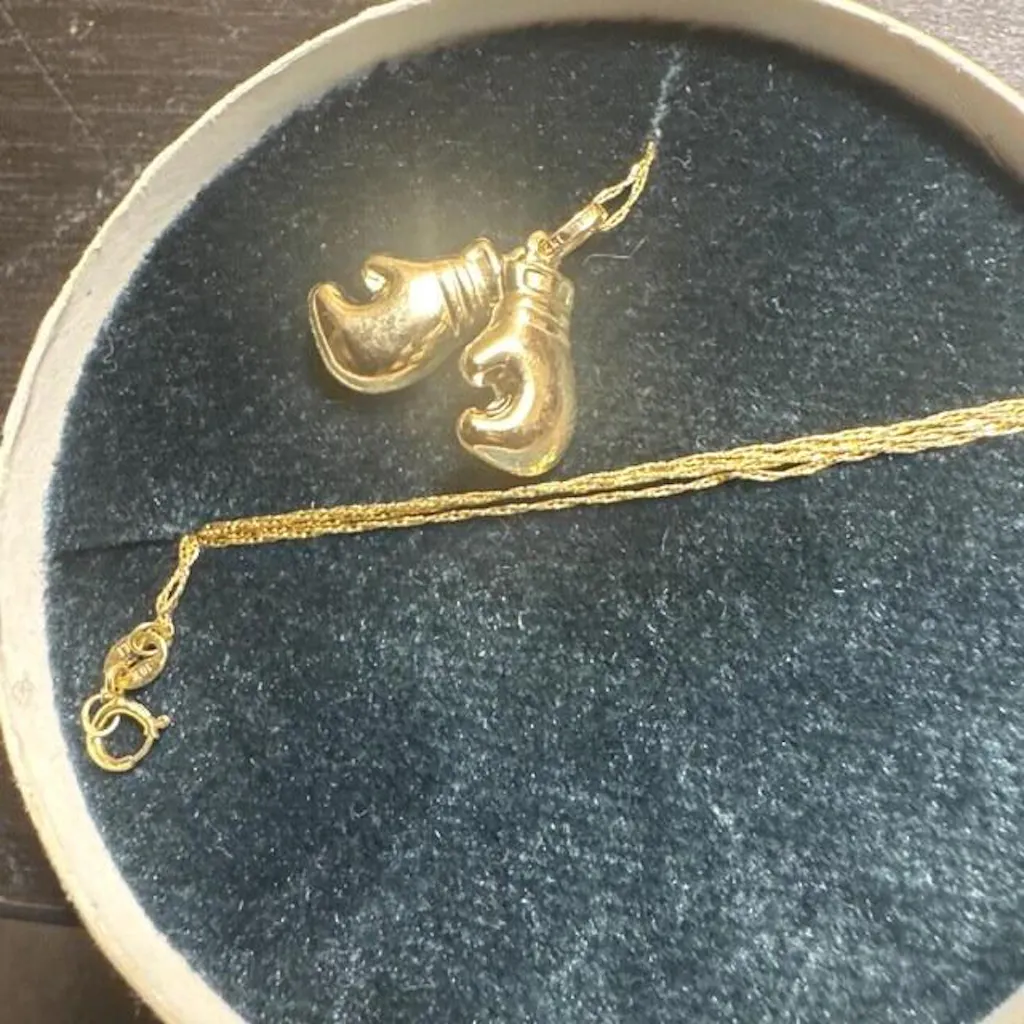 The Gold Boxing Glove Pendant Double is crafted from genuine 14K solid gold, featuring two finely detailed boxing gloves joined side by side with a high-polish finish. Measuring 13mm tall and 28mm wide, this pendant captures the iconic shape and lacing of classic boxing gloves, making it a standout piece for any jewelry collection. The double boxing gloves symbolize strength, resilience, and the fighting spirit, serving as a reminder of perseverance both in and out of the ring. Tarnish-free and hypoallergenic, it’s perfect for everyday wear or as a meaningful gift for boxing jewelry lovers.