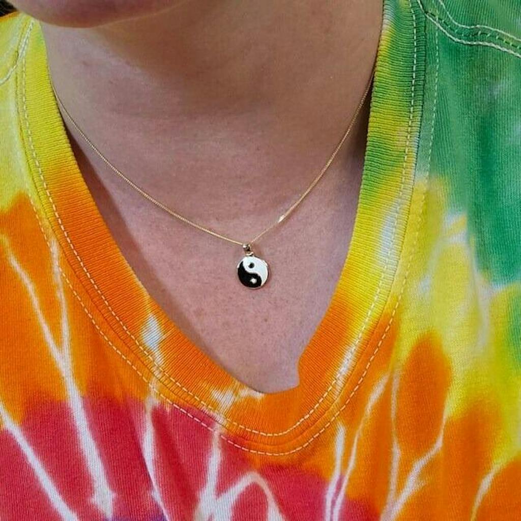 Embrace harmony with this exquisite Gold Enamel Yin Yang Pendant – Model PT2520. Crafted from 14K gold, this pendant features a beautifully balanced Yin Yang symbol, measuring 18mm in height and 12mm in width. The high-polish finish contrasts elegantly with the black enamel, creating a striking visual representation of duality and balance. The Yin Yang symbol, rooted in ancient Chinese philosophy, represents the interconnectedness of opposing forces in the universe. It symbolizes harmony, balance, and the cyclical nature of life. This hypoallergenic, tarnish-free pendant is perfect for those who appreciate Eastern philosophy, spiritual symbolism, or simply elegant jewelry design. Whether worn as a personal reminder of life's balance or as a stylish accessory, this gold Yin Yang pendant is a timeless piece that combines cultural significance with contemporary style.