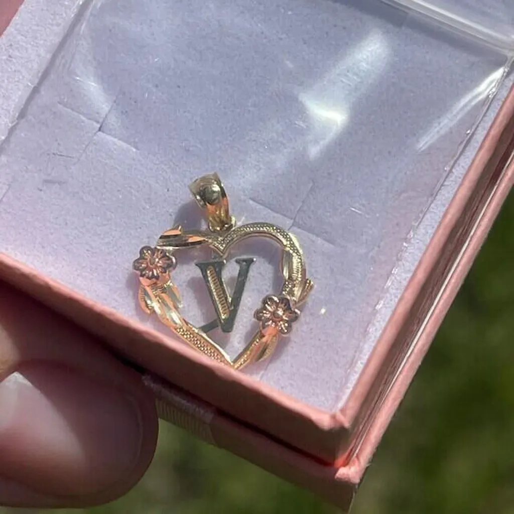 This exquisite, delicate, and sentimental heart-shaped pendant are perfect for that special someone. Made with 14K gold, this delicate piece features intricate details, adorned with flowers and a custom initial letter in the center. This one-of-a-kind pendant is a beautiful and thoughtful gift for your loved ones and will hold a place of significance in their heart.
