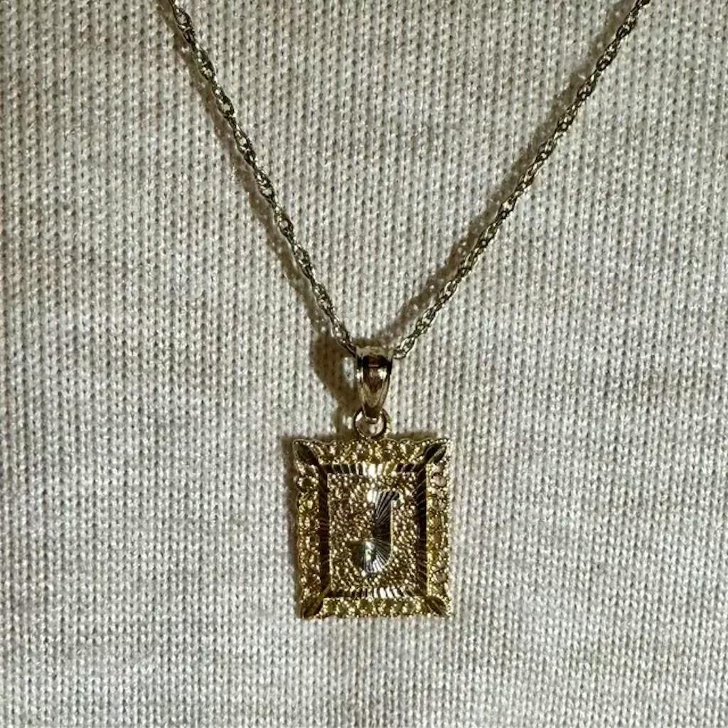 Stand out from the crowd and wear a solid gold letter J pendant that outshines the typical lettering pendant. This 14K gold letter J pendant redefines the way you wear a classic letter necklace. It presents the gold letter J necklace in the most regal fashion, yet is still appropriate for wear on a day-to-day basis.